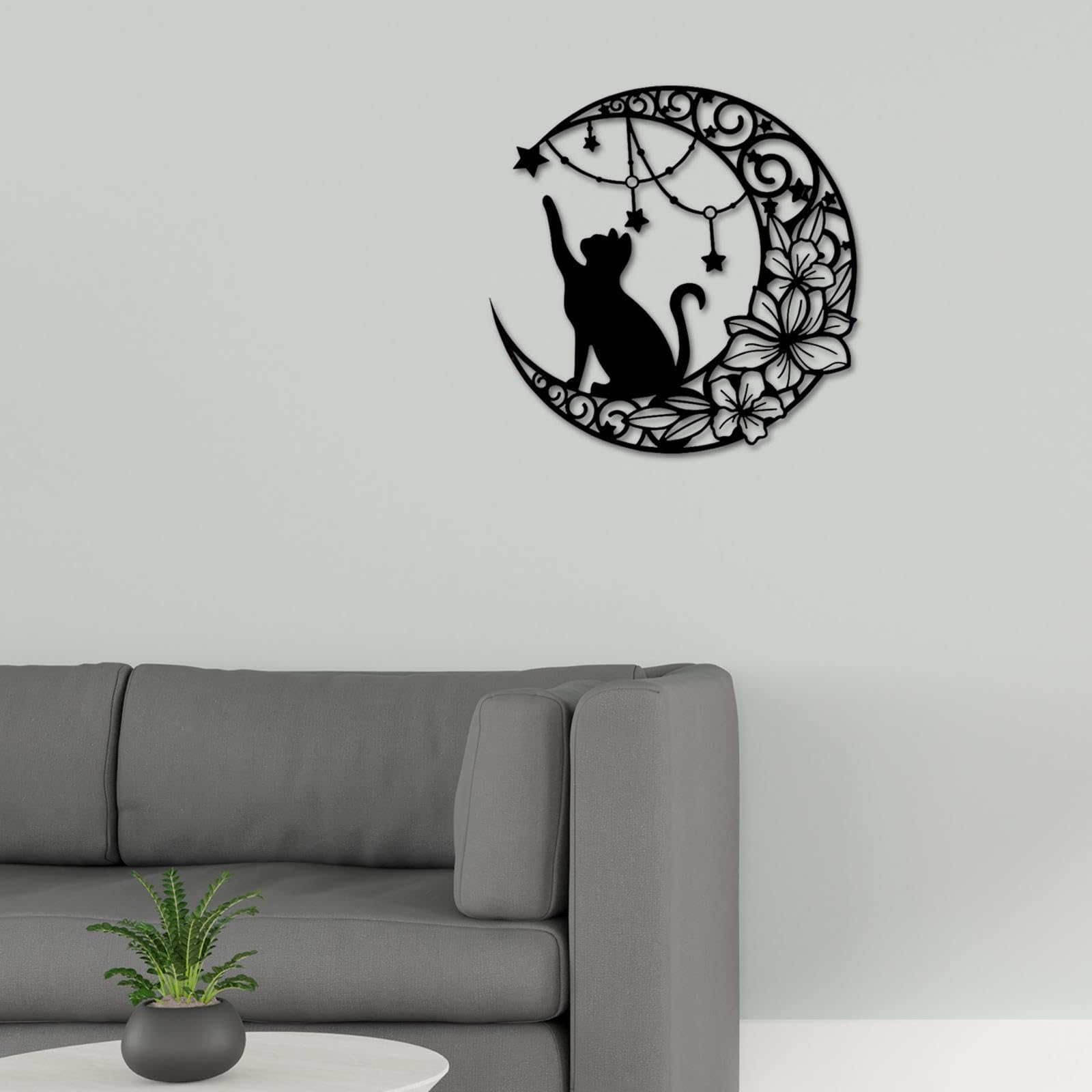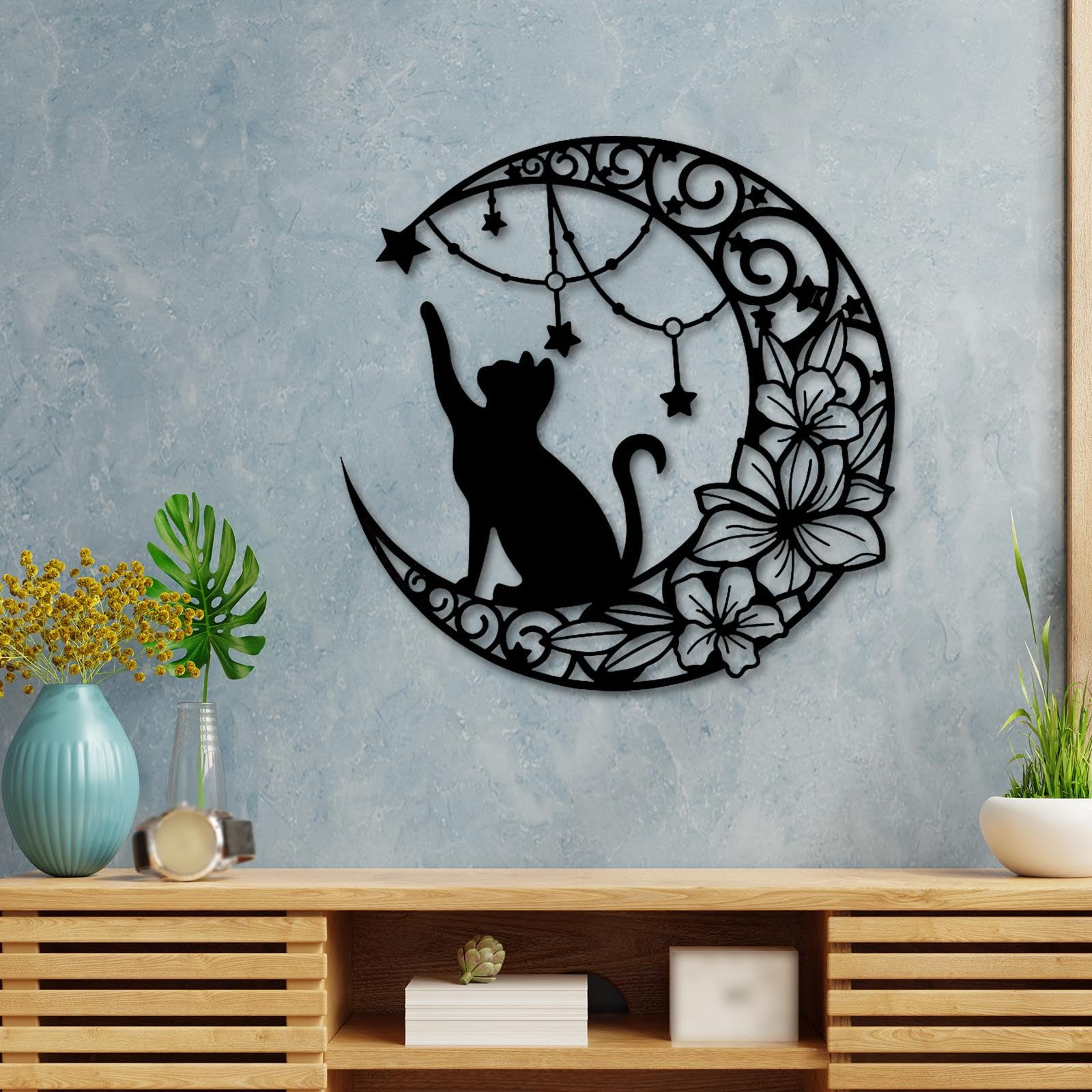 STARTIST メタル黒猫の壁の装飾壁掛けミニマリスト猫の装飾メタルウォールアートオーナメント猫のシルエットバルコニー、庭、ポーチ用