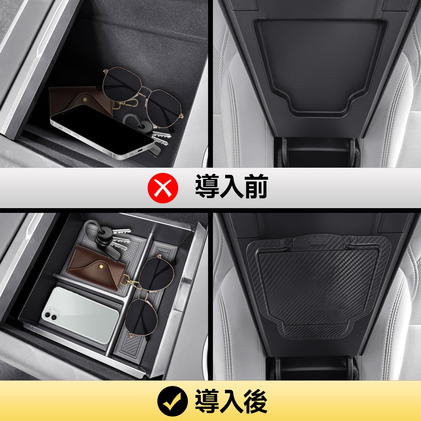 CHIYLE 5個セット 2025年式Tesla Model Y Juniper & 2024-2025年式Model 3 Highland対応 アームレスト内蔵引き出し収納&カップホルダー付きセンターコンソールオーガナイザートレー