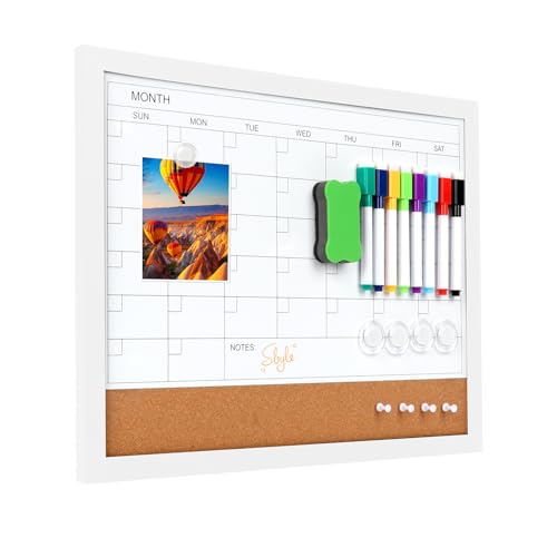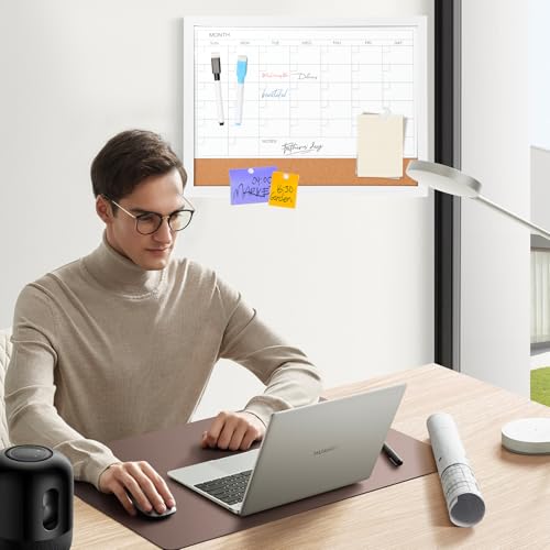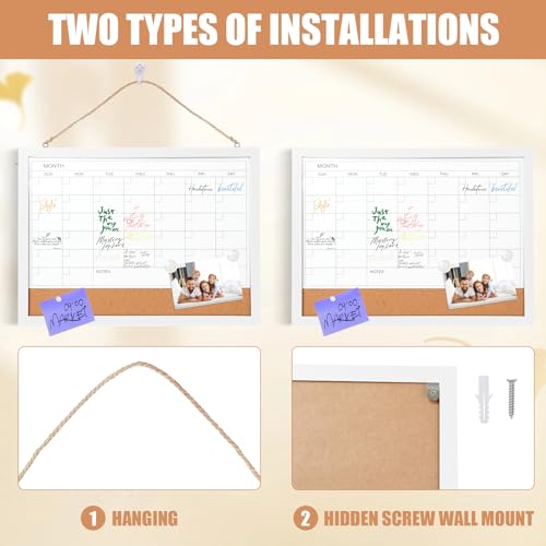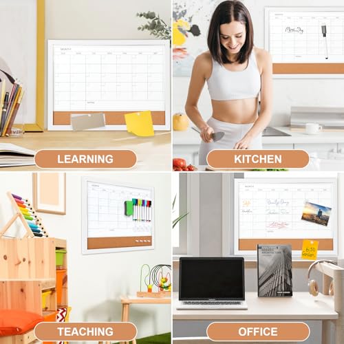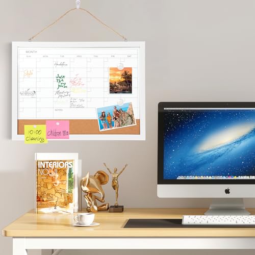 Marsrock マンスリーホワイトボードとコルクボードコンボ 壁用 17インチ x 13インチ リバーシブルハンギングホワイトボード両面ホワイトボード アルミフレーム付き 計画、オフィス、キッチン、学校、自宅用