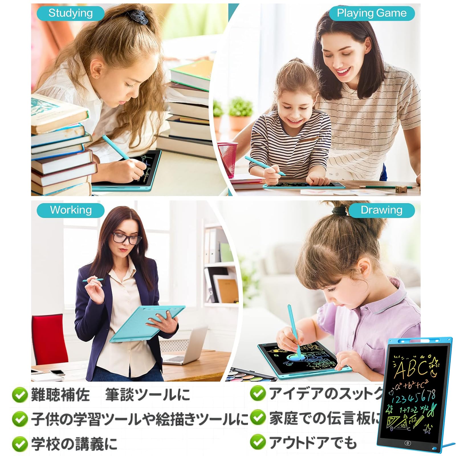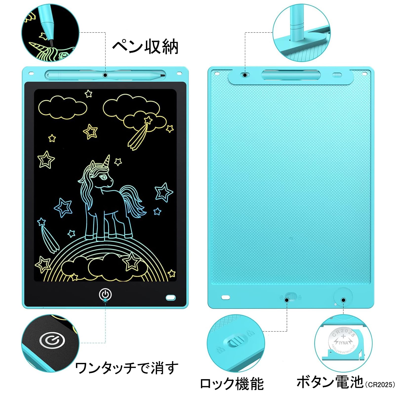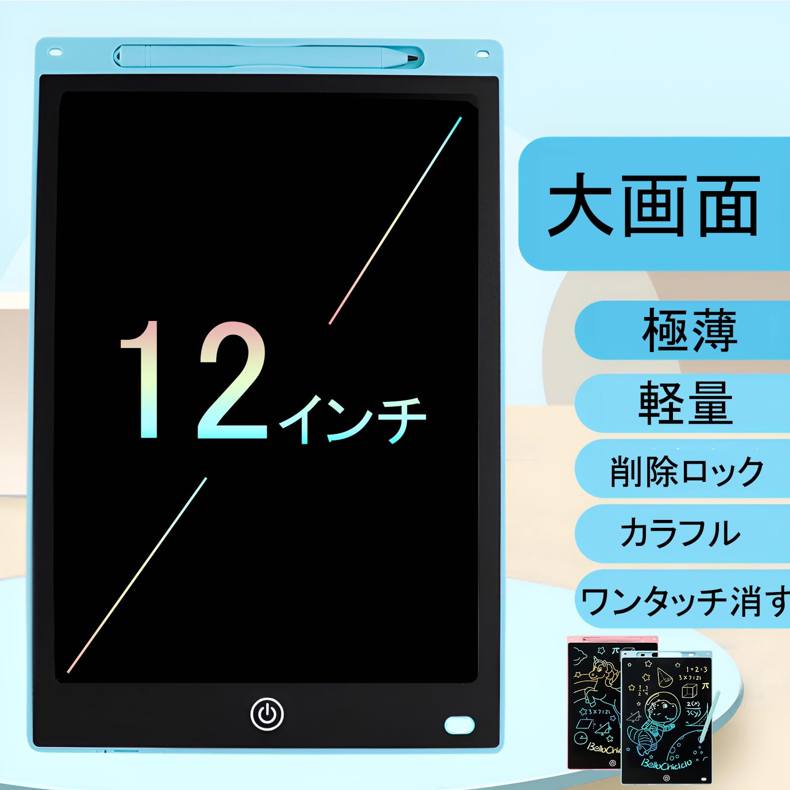 [Jessimi] お絵描きボード 12インチ 電子メモパッド 大画面デジタルメモ 高輝度 ロック機能搭載 書いて消せるボード ワンタッチで消去 ペン収納 筆談ボード 電池交換可能 LCD電子メモ帳 手書きパッド 伝言ボード 誕生日 人気ギフト プレゼント (ブルー)