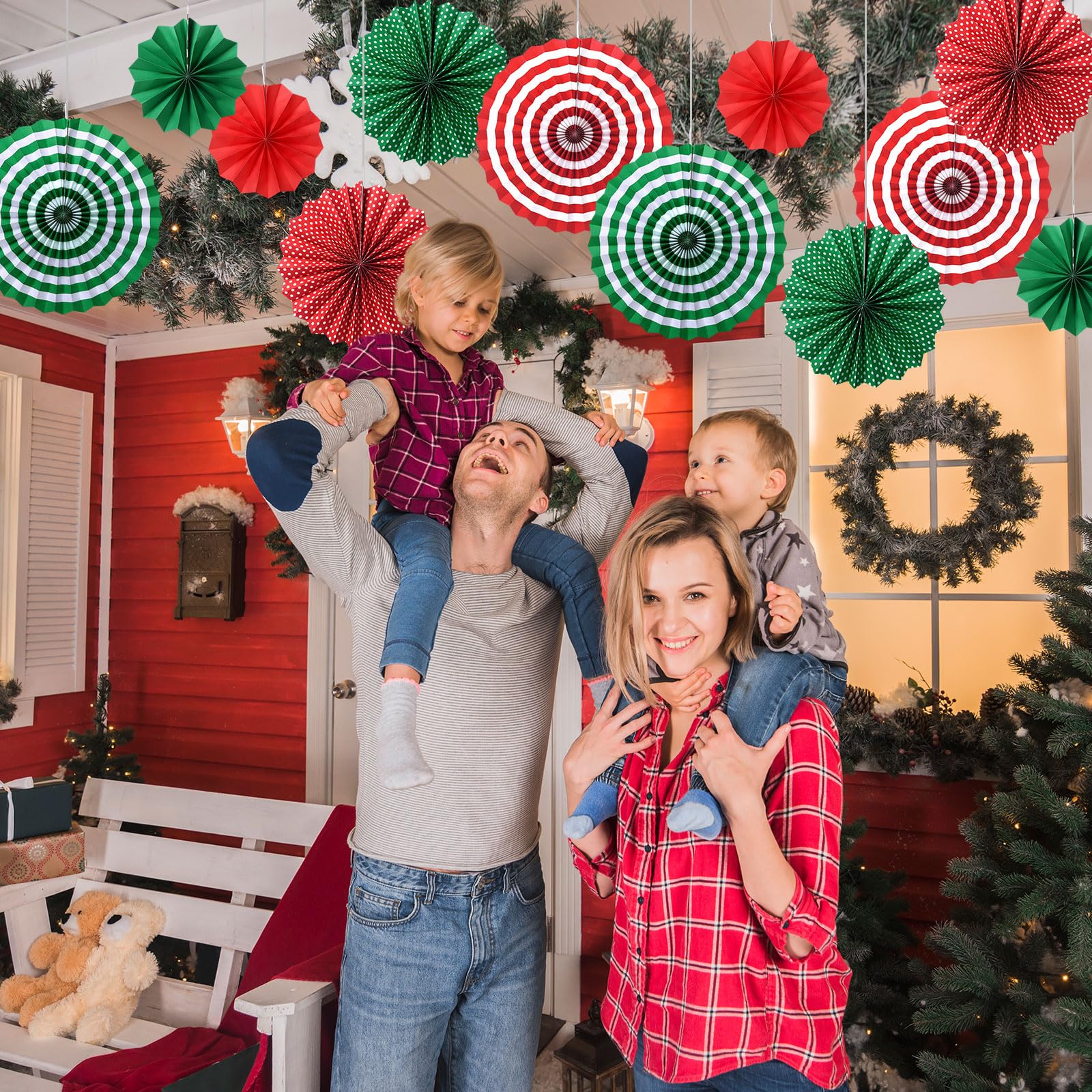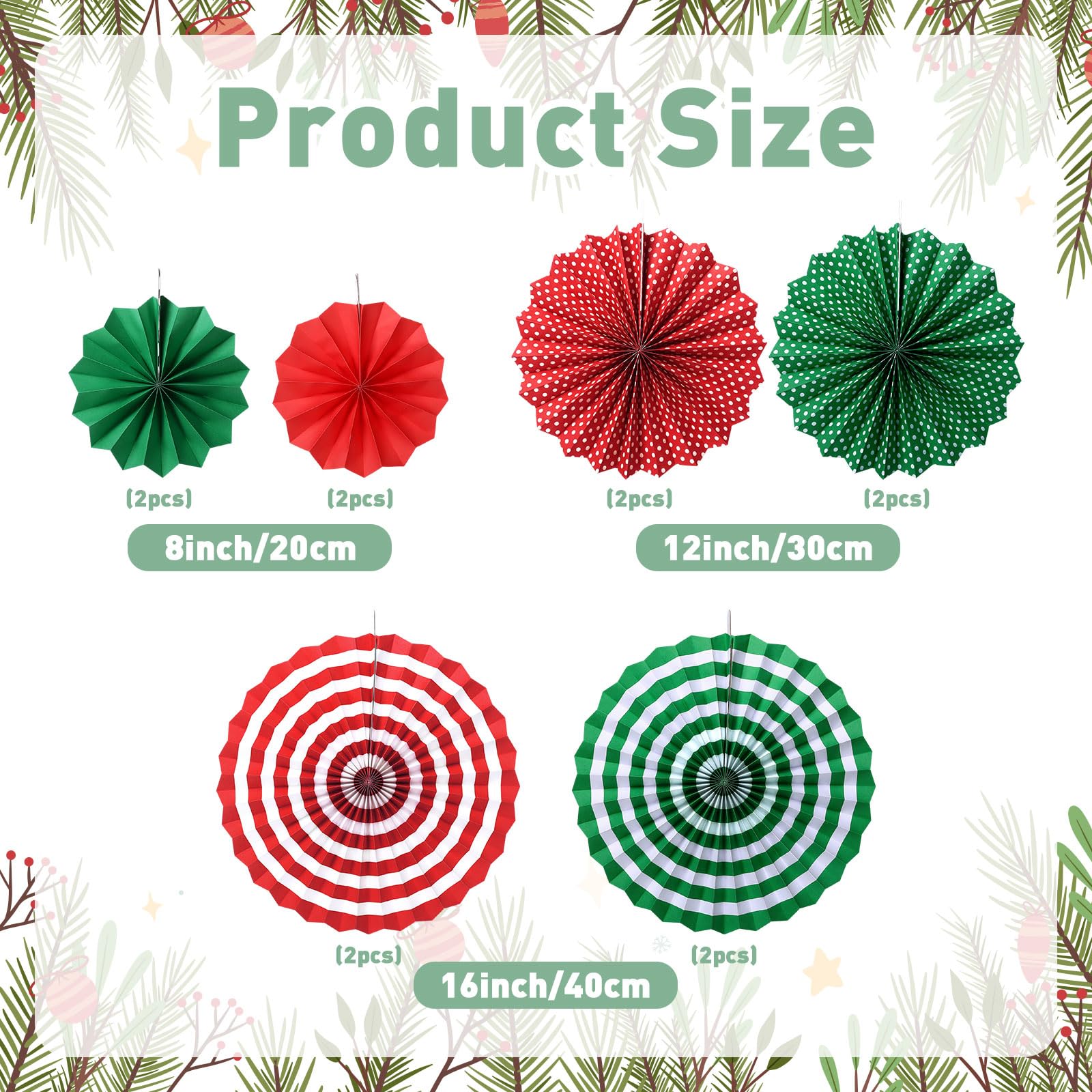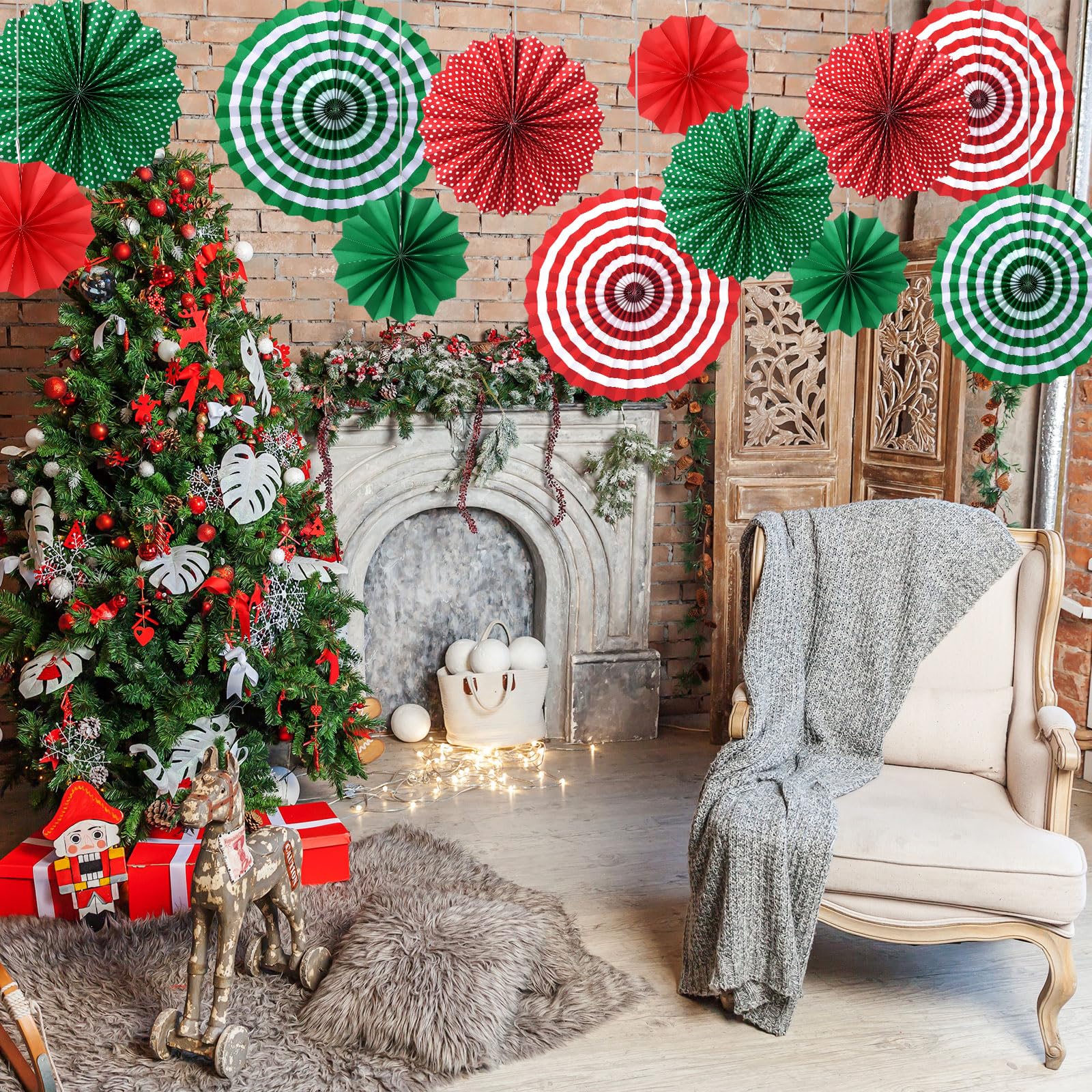 GWHOLE クリスマス ペーパーファン 12点セット パーティー デコレーション 飾り付けセット クリスマス飾り 扇子