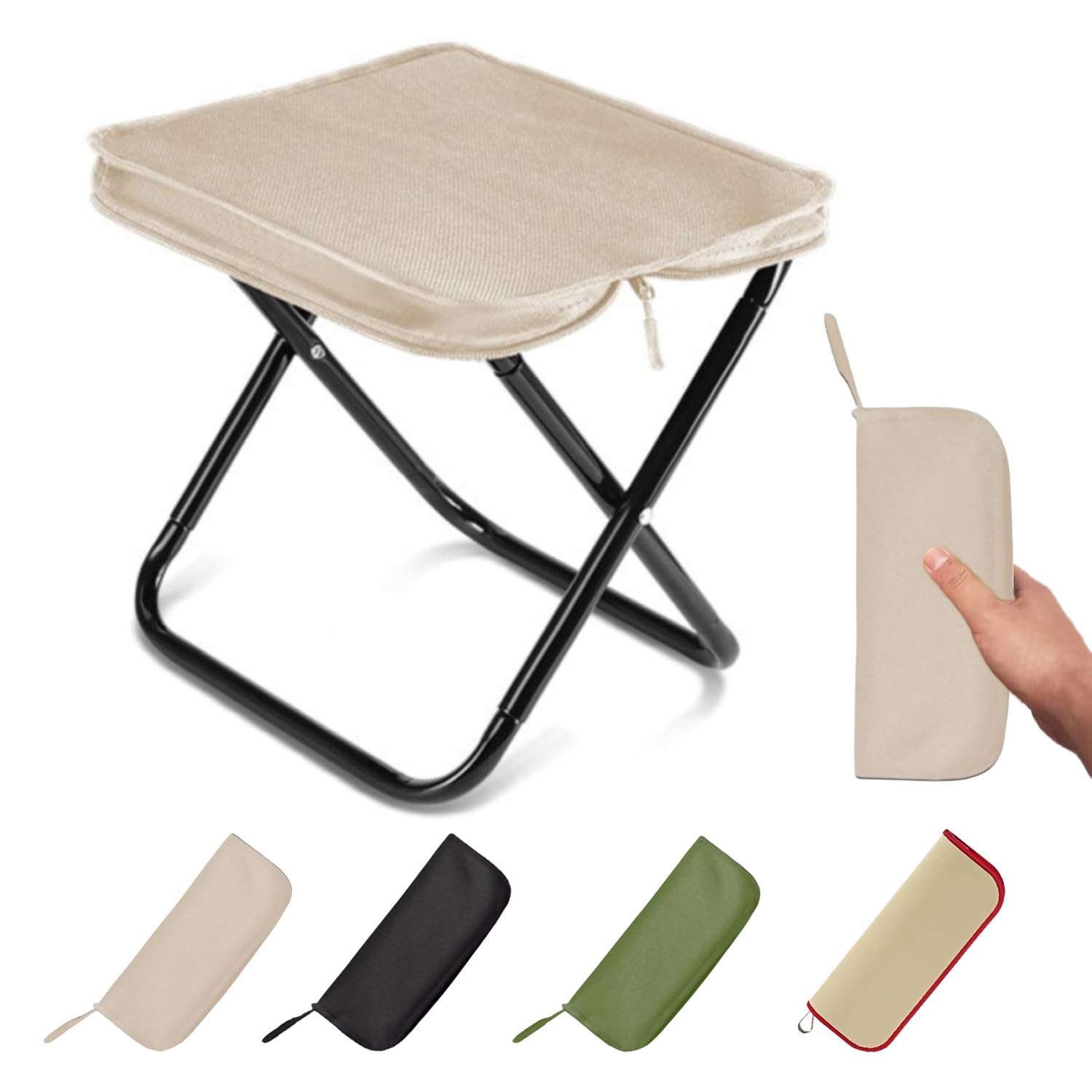 BIKYO 折りたたみ椅子 アウトドアチェア 伸縮式 キャンプ椅子 折り畳み式 キャンプスツール 軽量 コンパクト 持ち運び便利 耐荷重220KG 一秒開閉でき 高さ調整可能 6.5-45CM 滑り止め シートクッション 収納バッグ付き (ブラック+角型 + シートクッション)