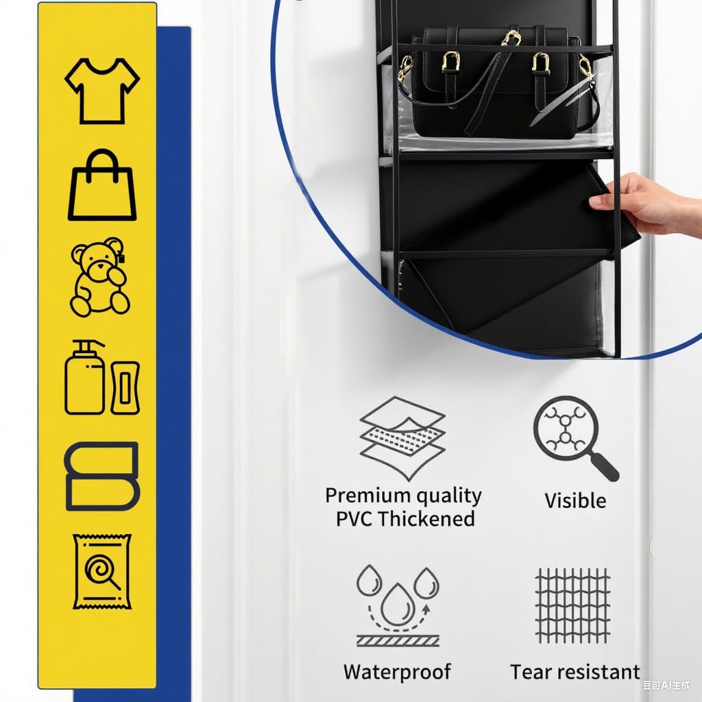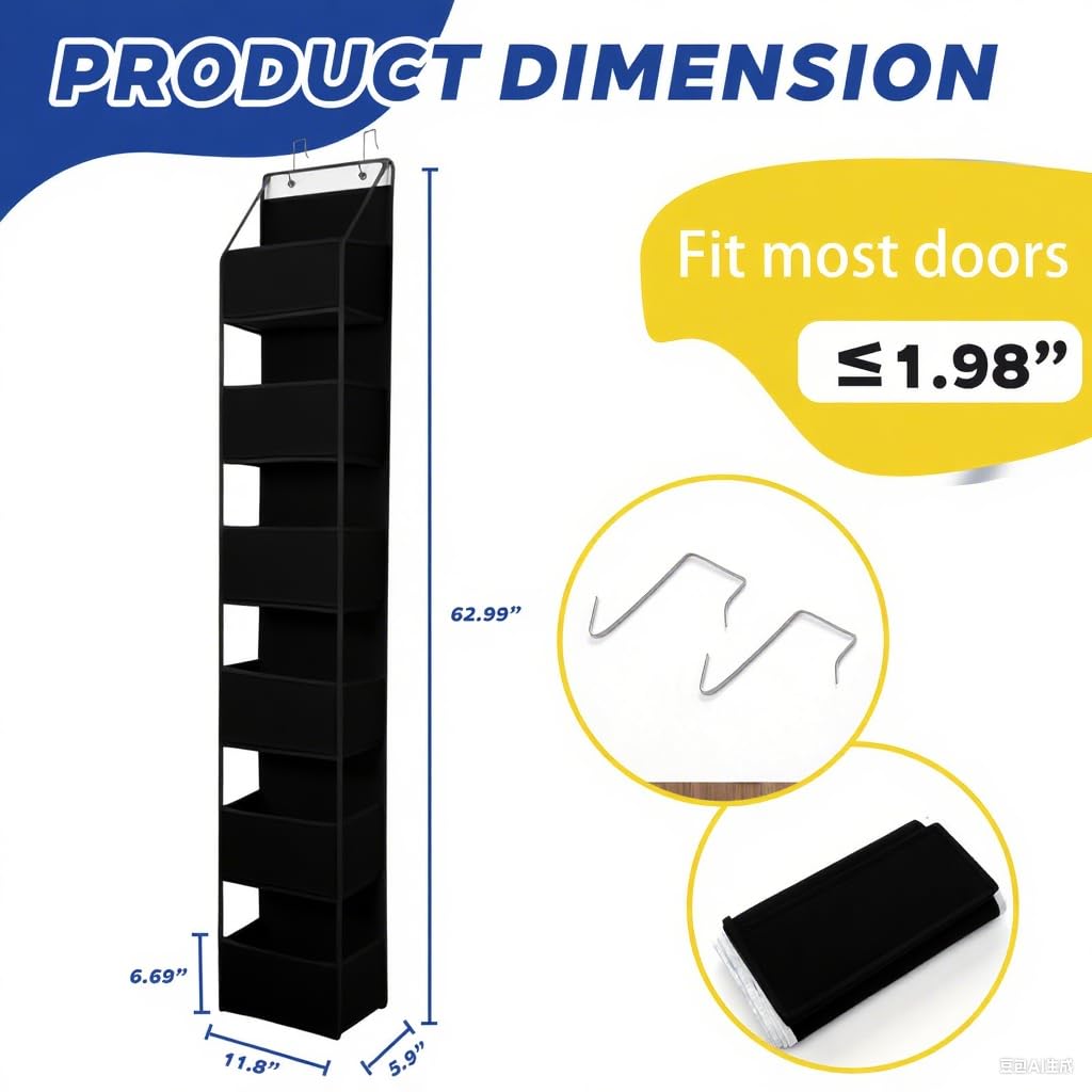 YRCBEHFU ウォールポケット 吊り下げ収納 ロッカー 【ドア掛け&壁掛け両用】〈整理収納アドバイザー監修 〉収納 ぬいぐるみ おもちゃ 防塵 防水 ウォールポケット タオル 収納(6段、ブラック)