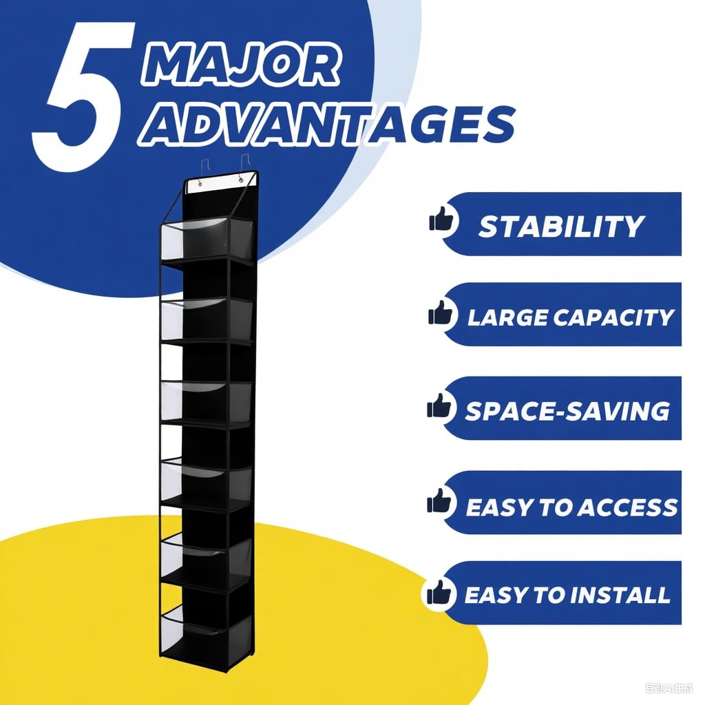 TATIU ウォールポケット 壁掛け 収納 ドアかけ 5段 ブラック