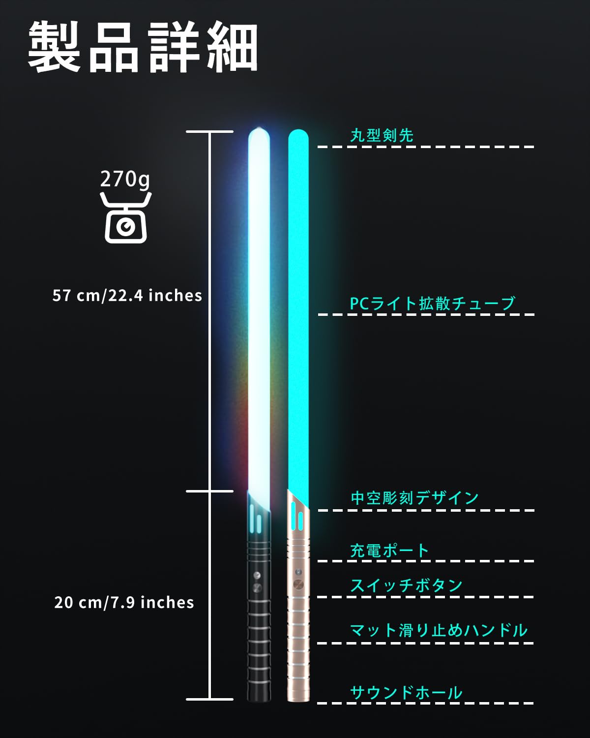 ライトセーバー LED 14色切替 光る剣 金属製 充電式 コスプレ 撮影用 パーティー ハロウィン プレゼント (ブラック+ローズゴールド 2本セット)