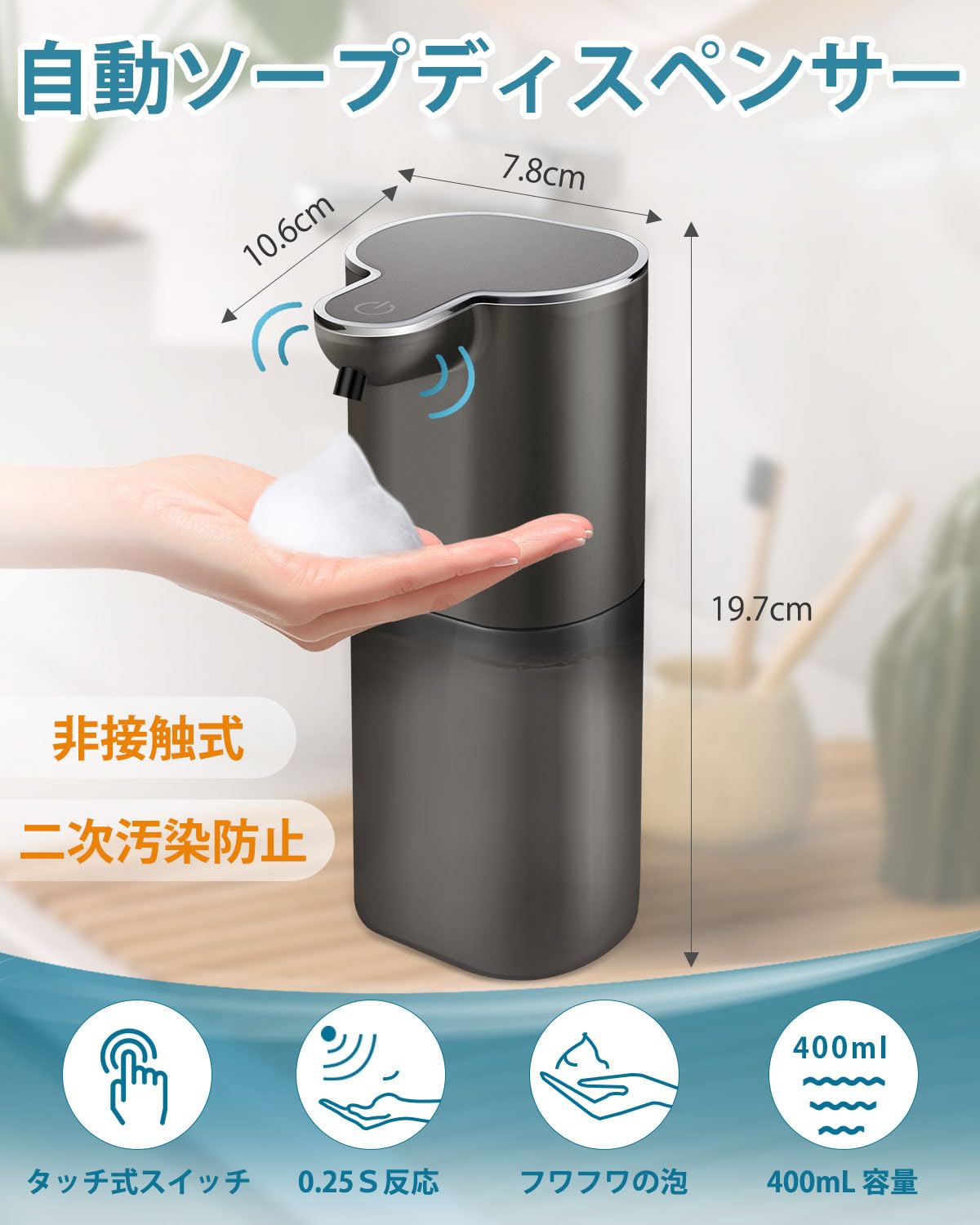 Bosilunlife ソープディスペンサー 自動 泡 ブラック