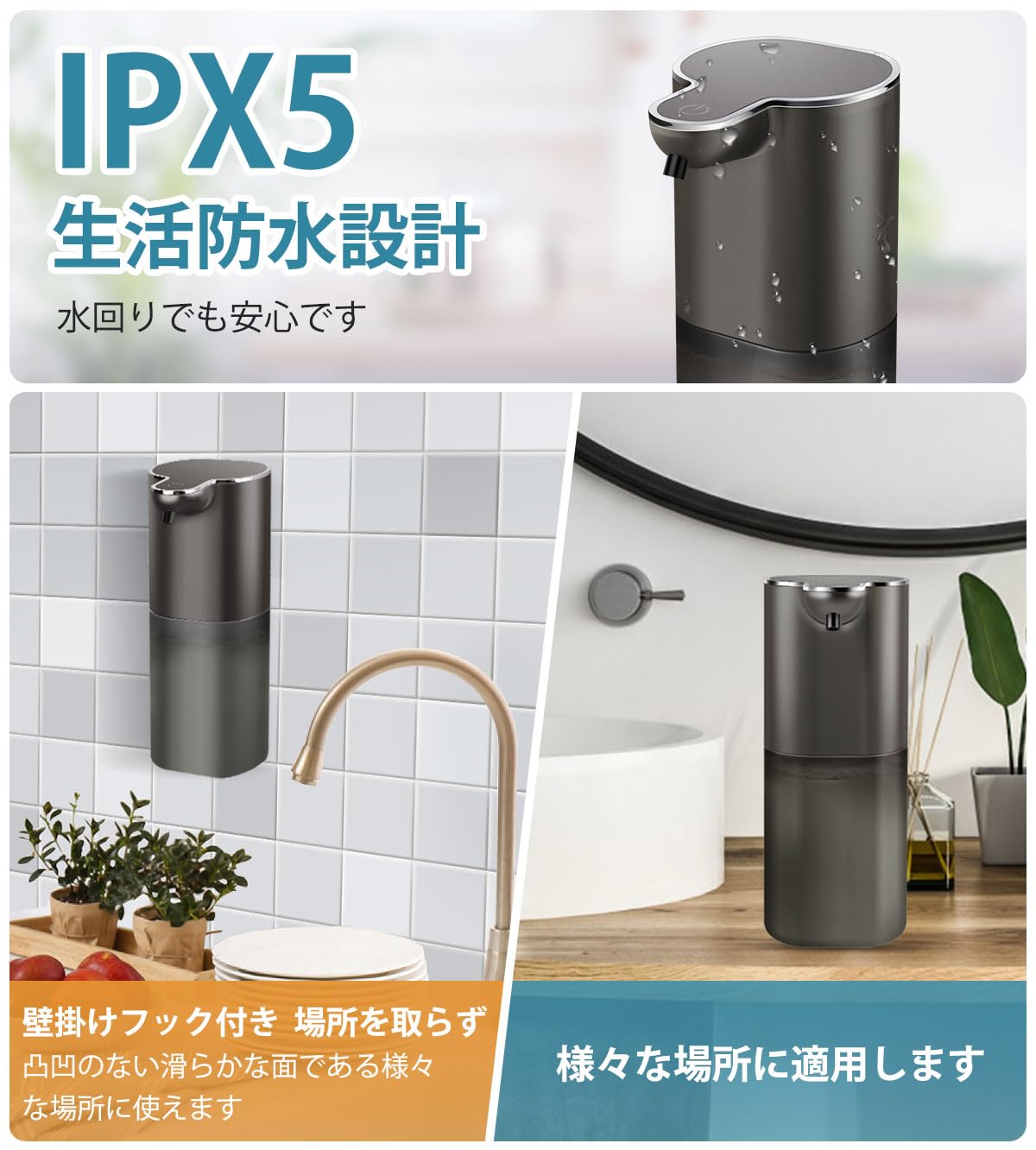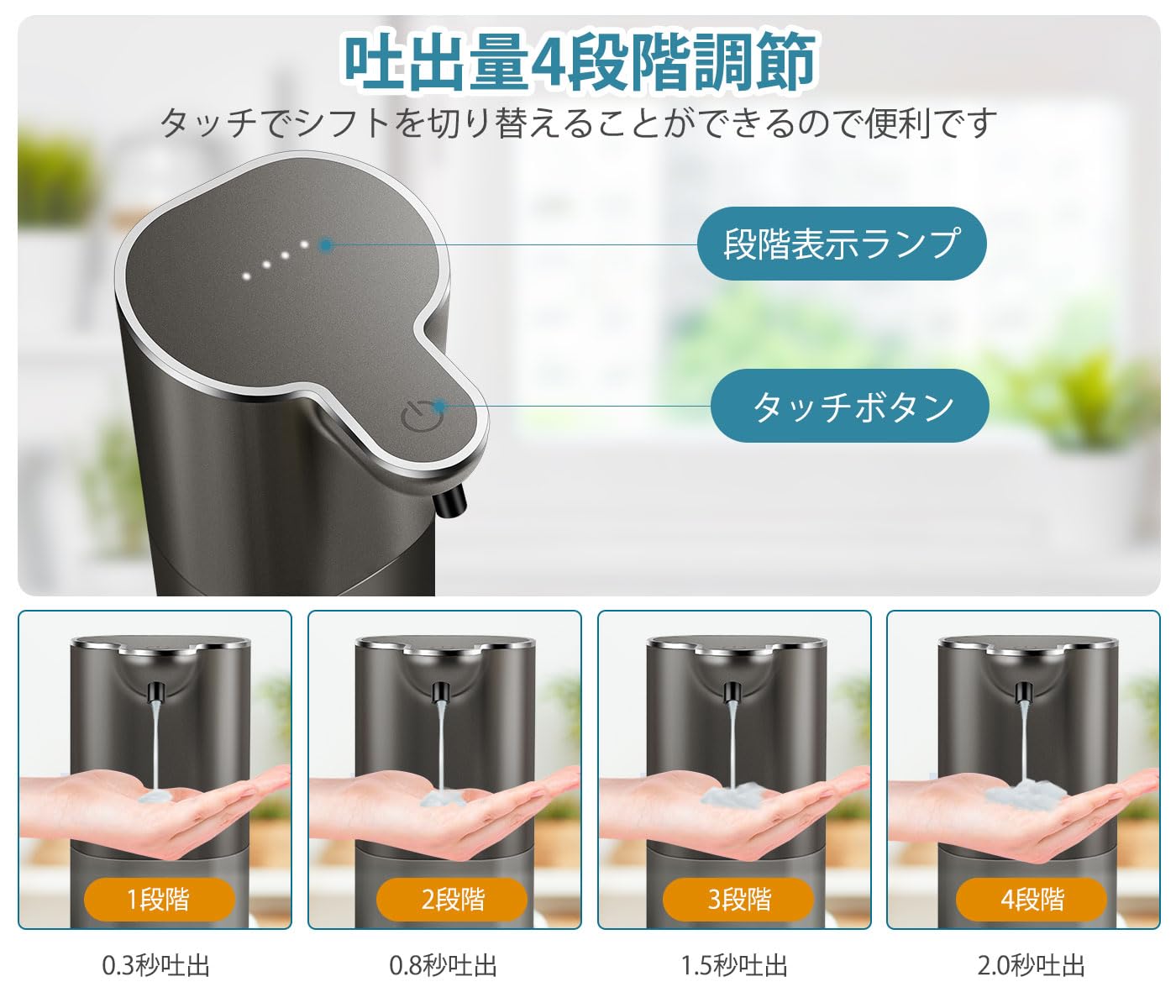 Gotofine ソープディスペンサー 泡 自動 ハンドソープ ディスペンサー オートディスペンサー 壁掛け 400ml 吐出量4段階調節 高感度センサー 充電式 非接触式 IPX5防水 食器洗剤 キッチン 家庭 学校 病院 洗面所などに適用 日本語説明書付き