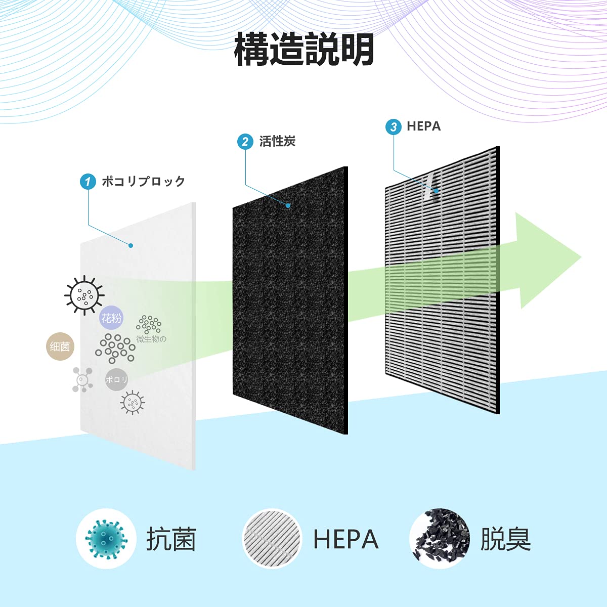 J&H 交換用フィルターセット AC-FT06 空気清浄機用 集じんフィルター 脱臭フィルター 活性炭フィルター プリーツフィルター互換品 1セット