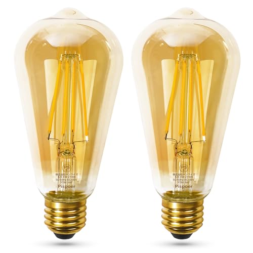 Pispoer|フィラメント LED電球| エジソン電球6W E26口金 60W形相当|電球色|820LM エジソンランプ ST64 広配光|琥珀色|シャンデリア用 レトロ電球|調光器非対応| 2個入り