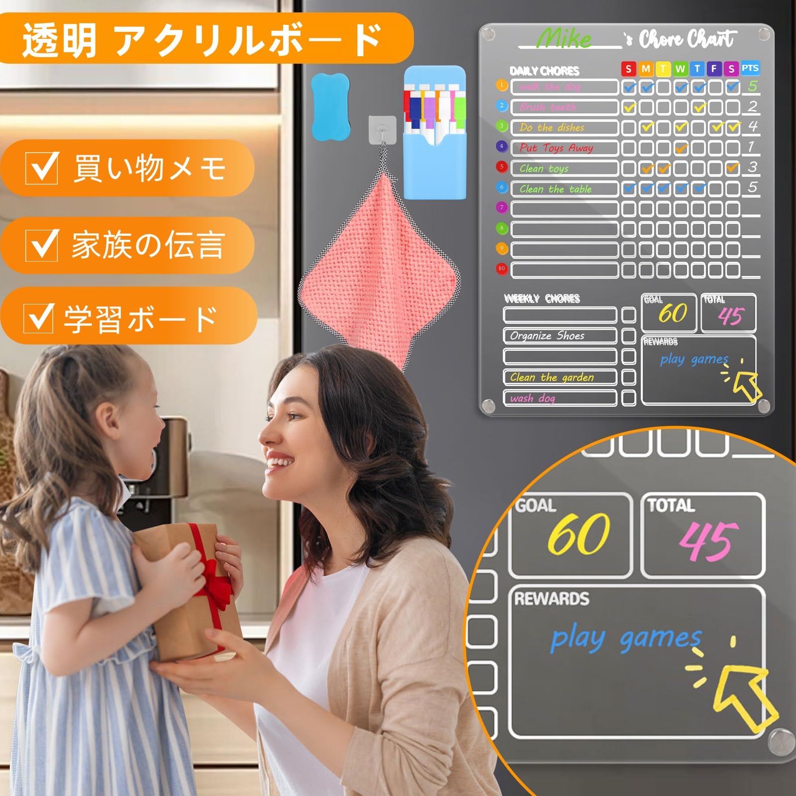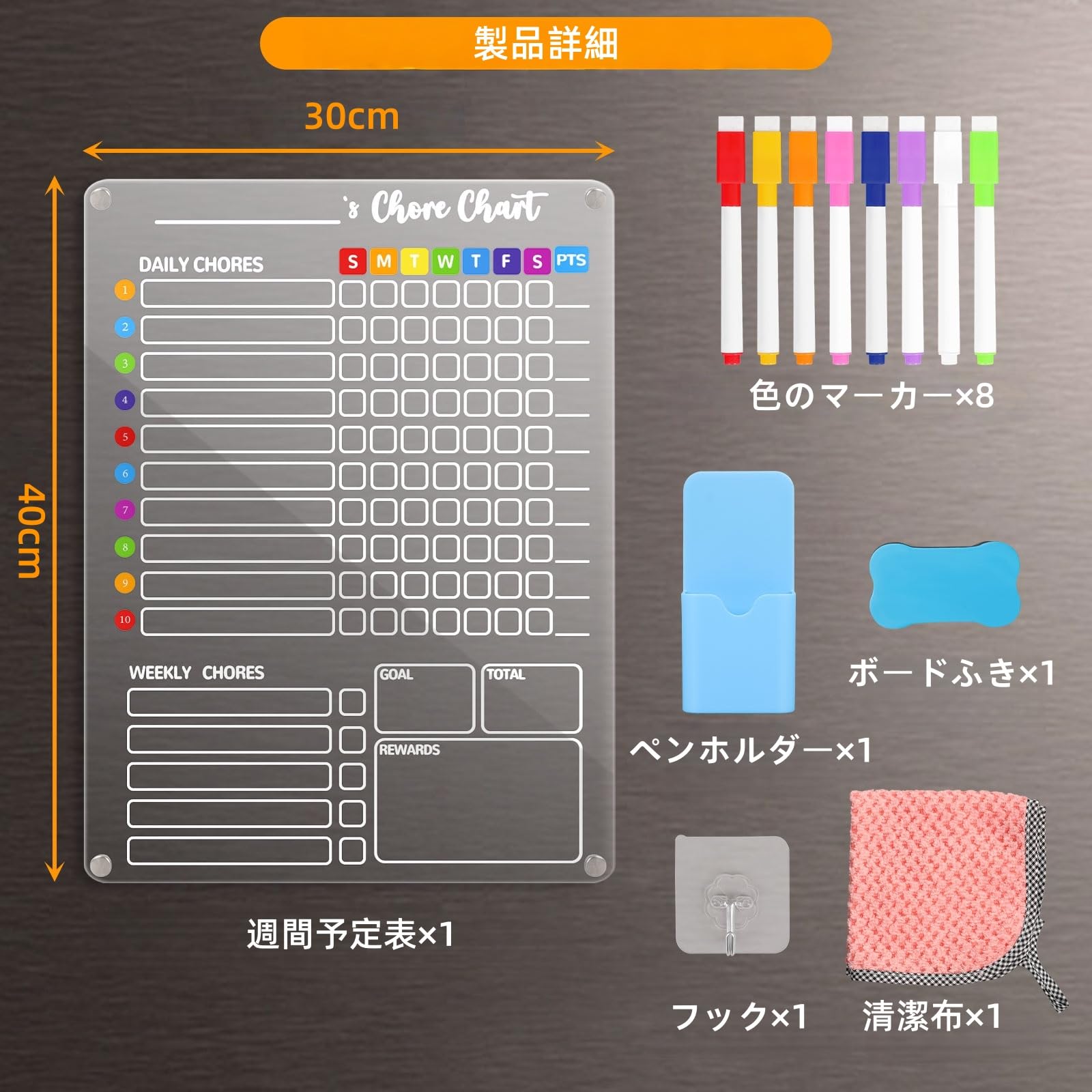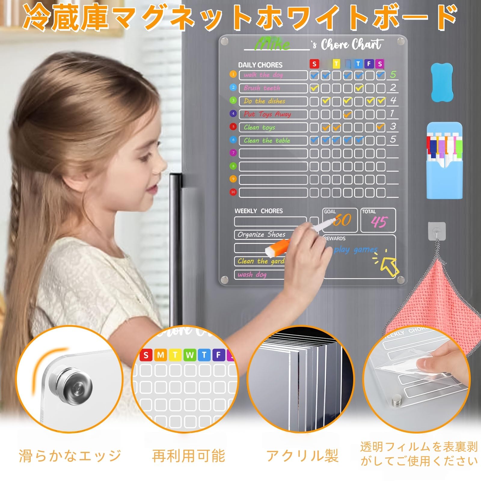 スケジュールボード 冷蔵庫用 透明カレンダー アクリル 磁性 冷蔵庫に貼る 40x30cm 日間予定表と週間予定表 繰り返し使用可能 キッチンパネル 買い物リスト 掲示板 メモー用に対応 在庫管理 子供落書き 家庭用 オフィス用品 スケジュールボード マーカー・イレイザー付き