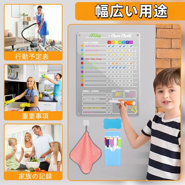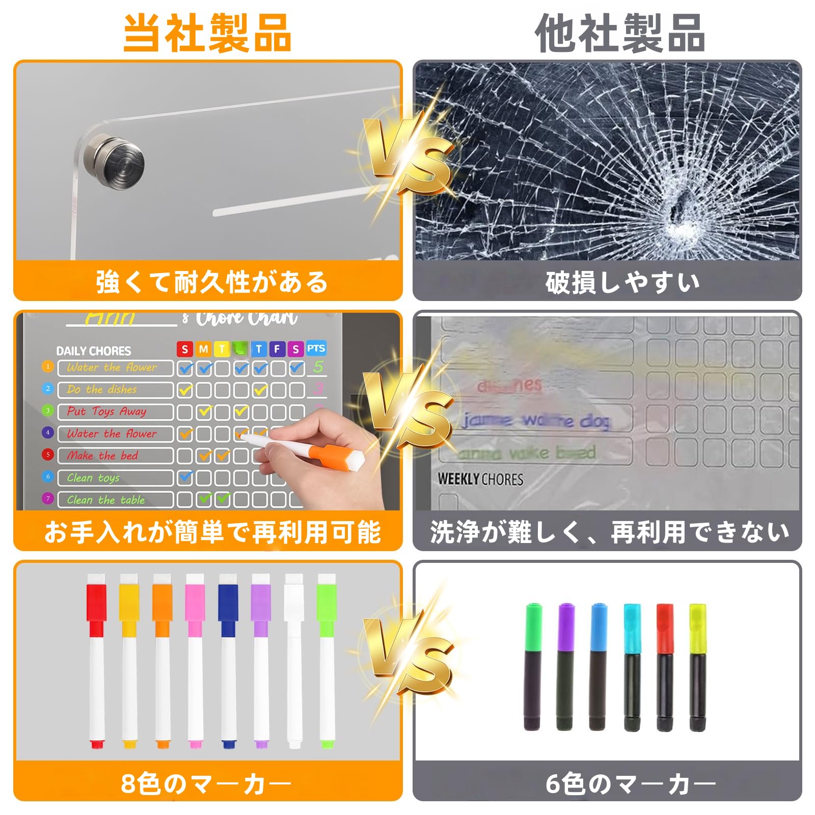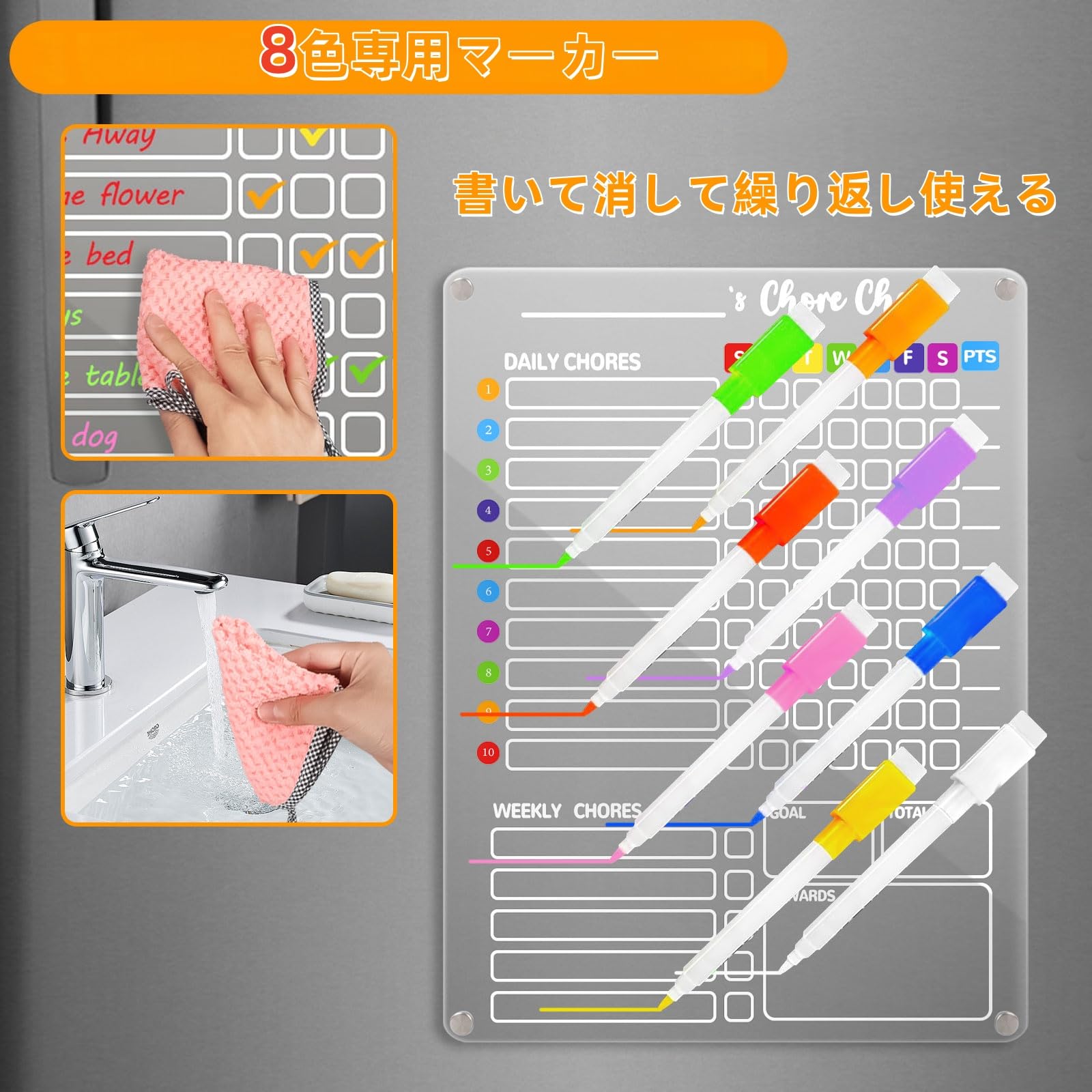 スケジュールボード 冷蔵庫用 透明カレンダー アクリル 磁性 冷蔵庫に貼る 40x30cm 日間予定表と週間予定表 繰り返し使用可能 キッチンパネル 買い物リスト 掲示板 メモー用に対応 在庫管理 子供落書き 家庭用 オフィス用品 スケジュールボード マーカー・イレイザー付き
