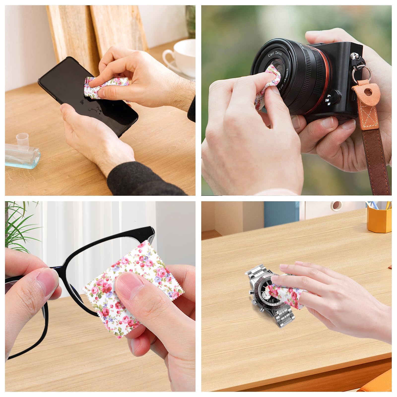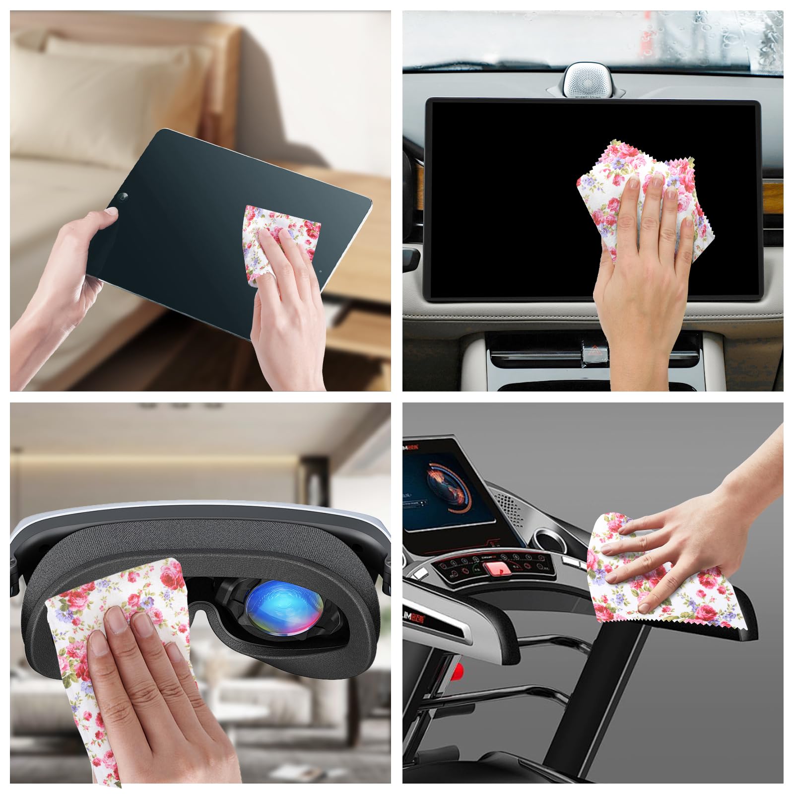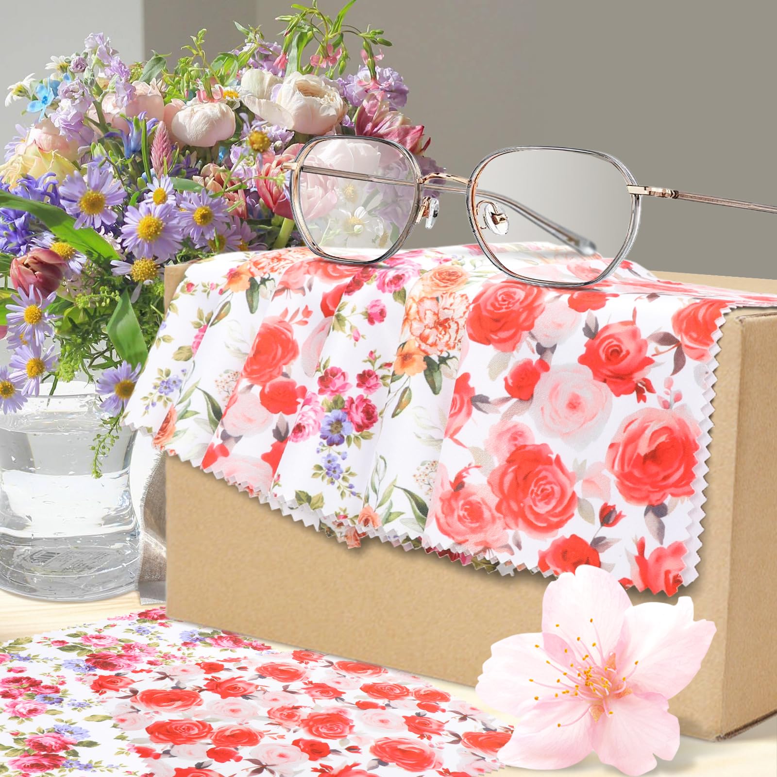 TOWEBOORY メガネ拭き クロス 花柄 マイクロファイバー 【個包装 6枚入り】 めがねふき 可愛い おしゃれ クリーニングクロス 眼鏡 クリーナー 画面拭き ハンカチ 液晶 レンズ スマホ カメラ 16x16cm 繰り返し利用可能 収納ケース付き 携帯便利 職場 自宅