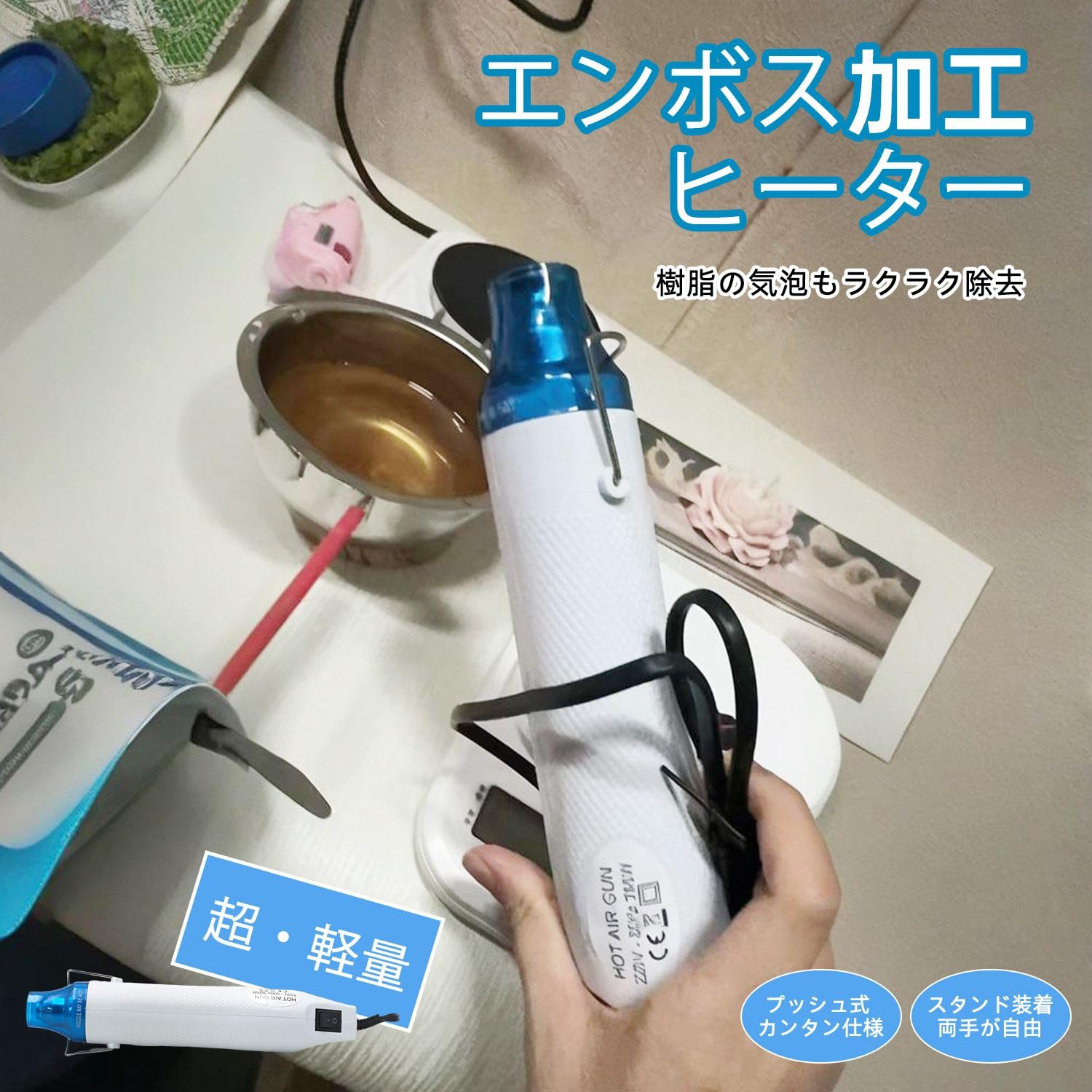 KKLM レジン用品 エンボスヒーター ヒートガン レジン道具 エンボスヒーター(ヒートガン) ホワイト UVレジン気泡除去に最適 レジンクラフト ハンドメイド プラ板加工用ツール