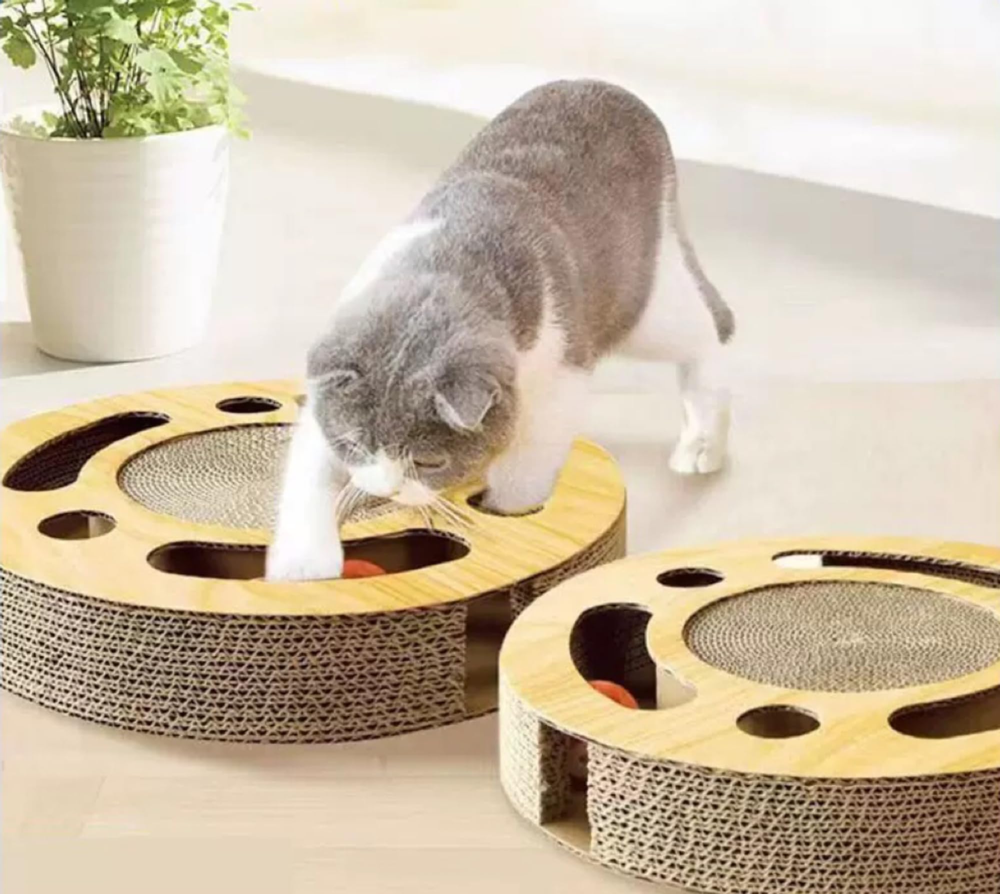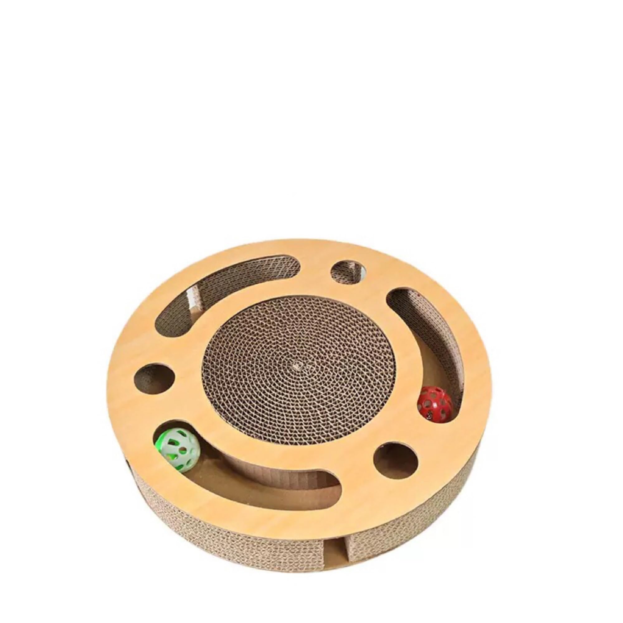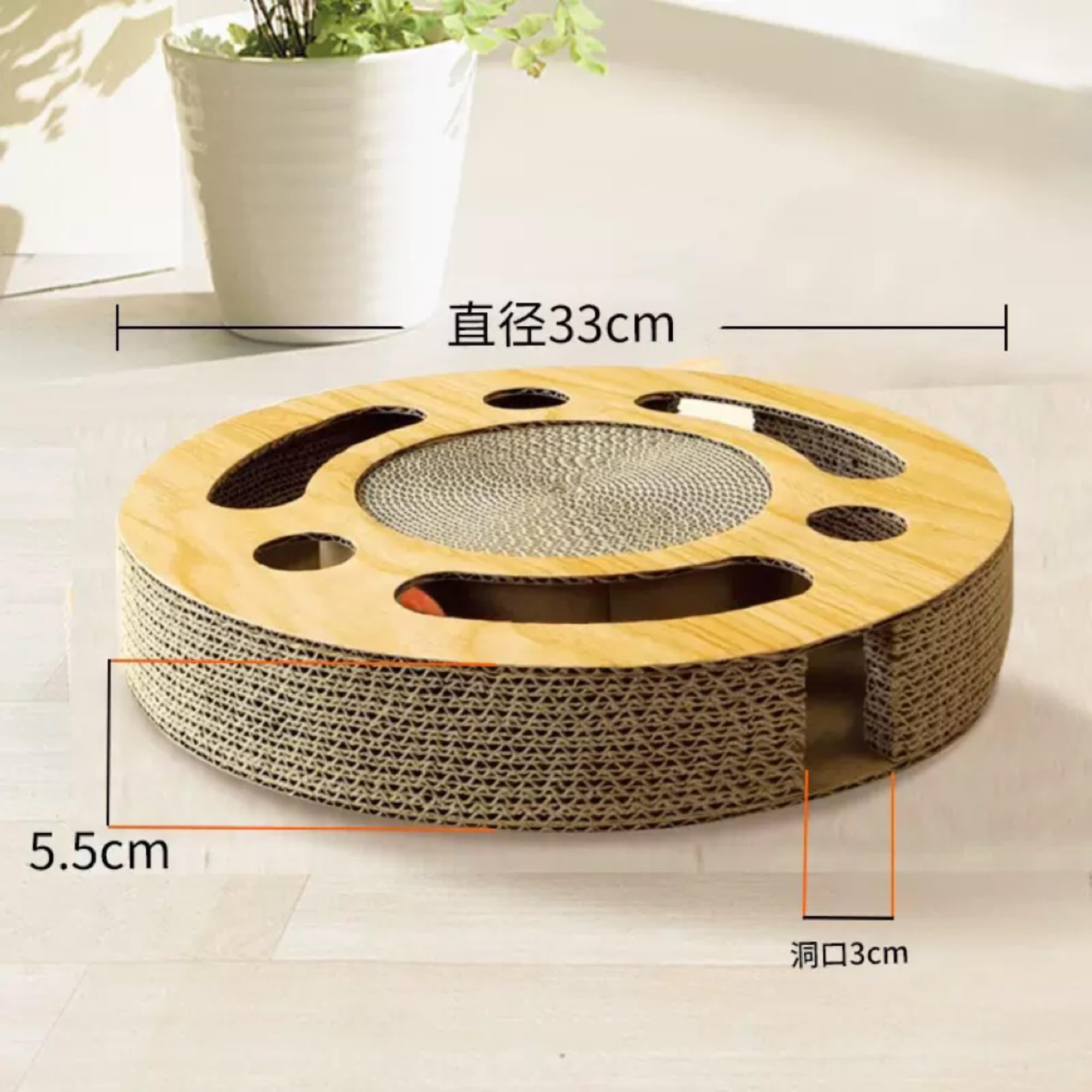 TRAVEYO 猫 爪研ぎ 猫 爪とぎ 鈴付きボール2個付き 組立不要 猫 つめとぎ&宝探し遊び 設計 直径33cm 円形 段ボール製 猫のおもちゃ 爪とぎ