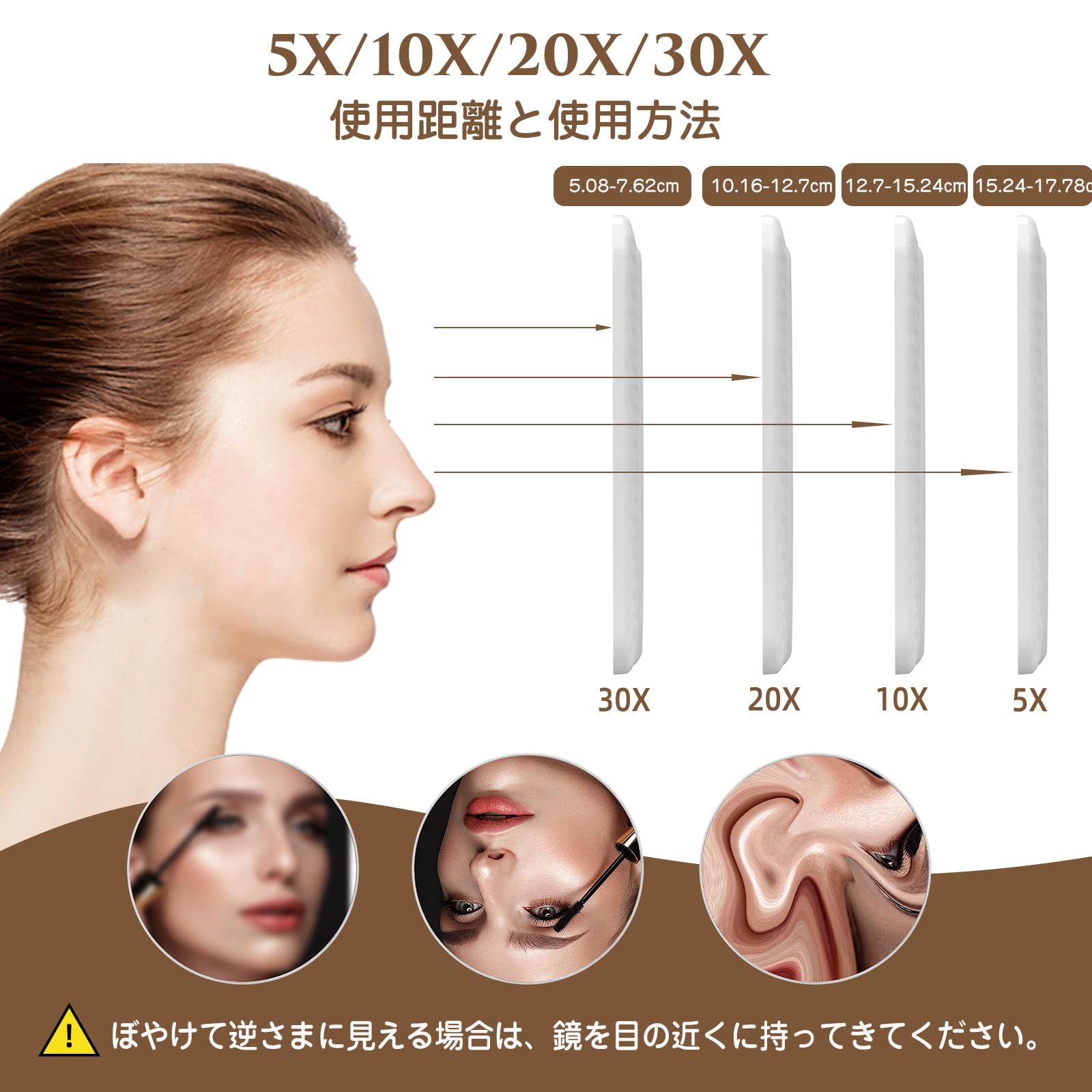DYNWAVE メイクアップミラー 化粧鏡 10倍拡大鏡 強力吸盤付き 耐久性 白