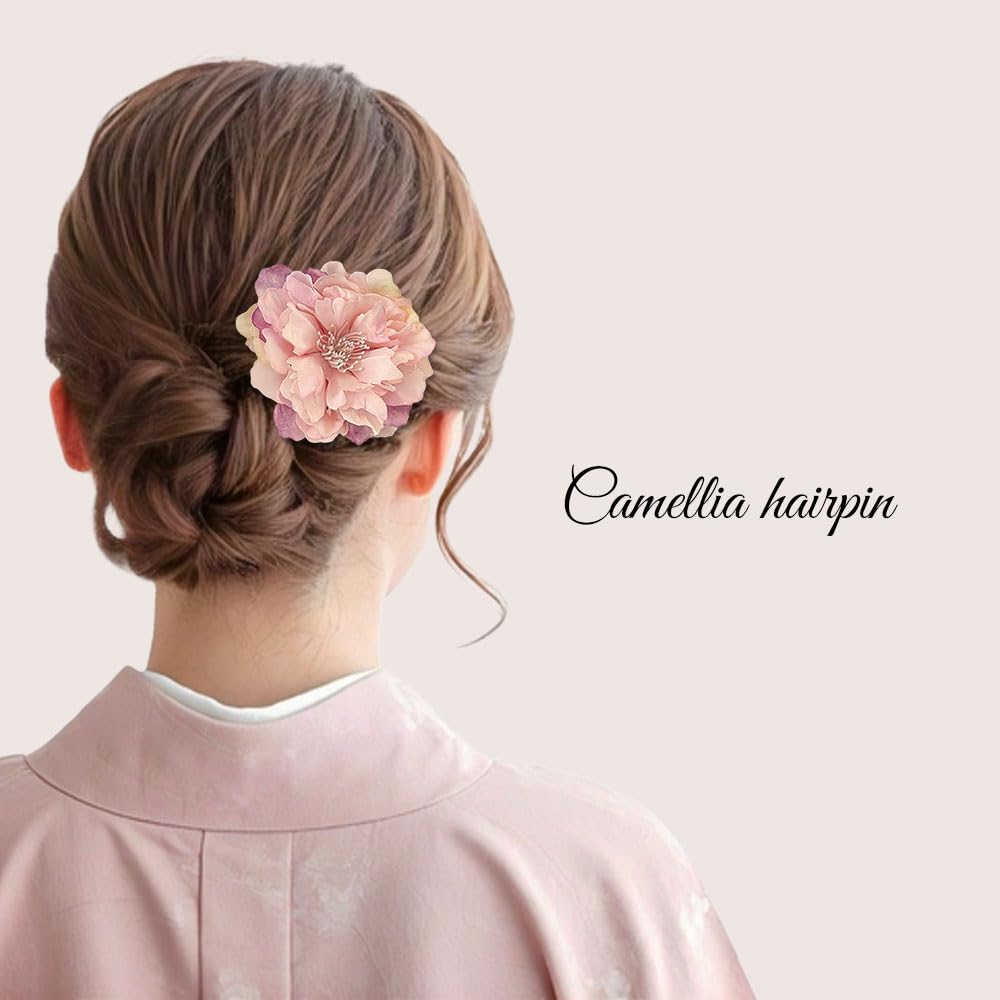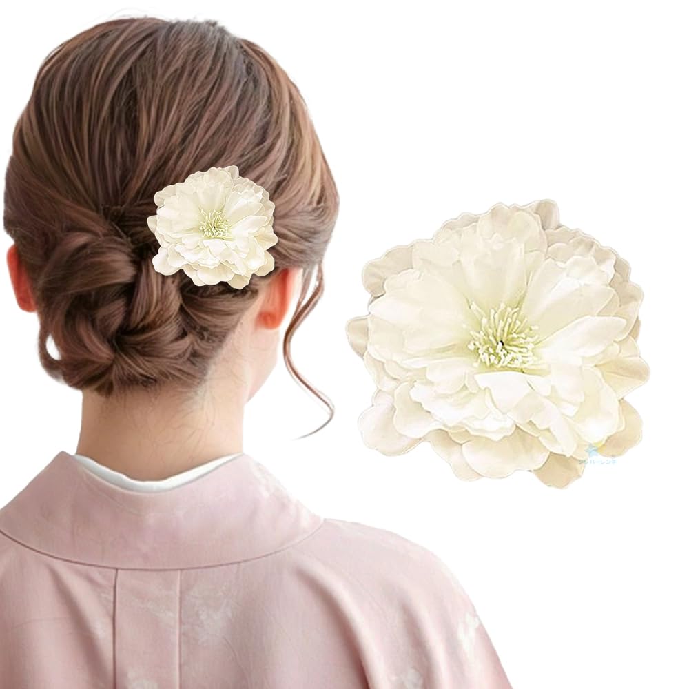 [STEEL-LAND]髪飾り 造花 クリップ 2個セット フラワー ヘアアクセサリー 和装 花火大会 着物 袴 成人式 卒業式 結婚式 前撮り 七五三 上品 シンプル (ベージュ)