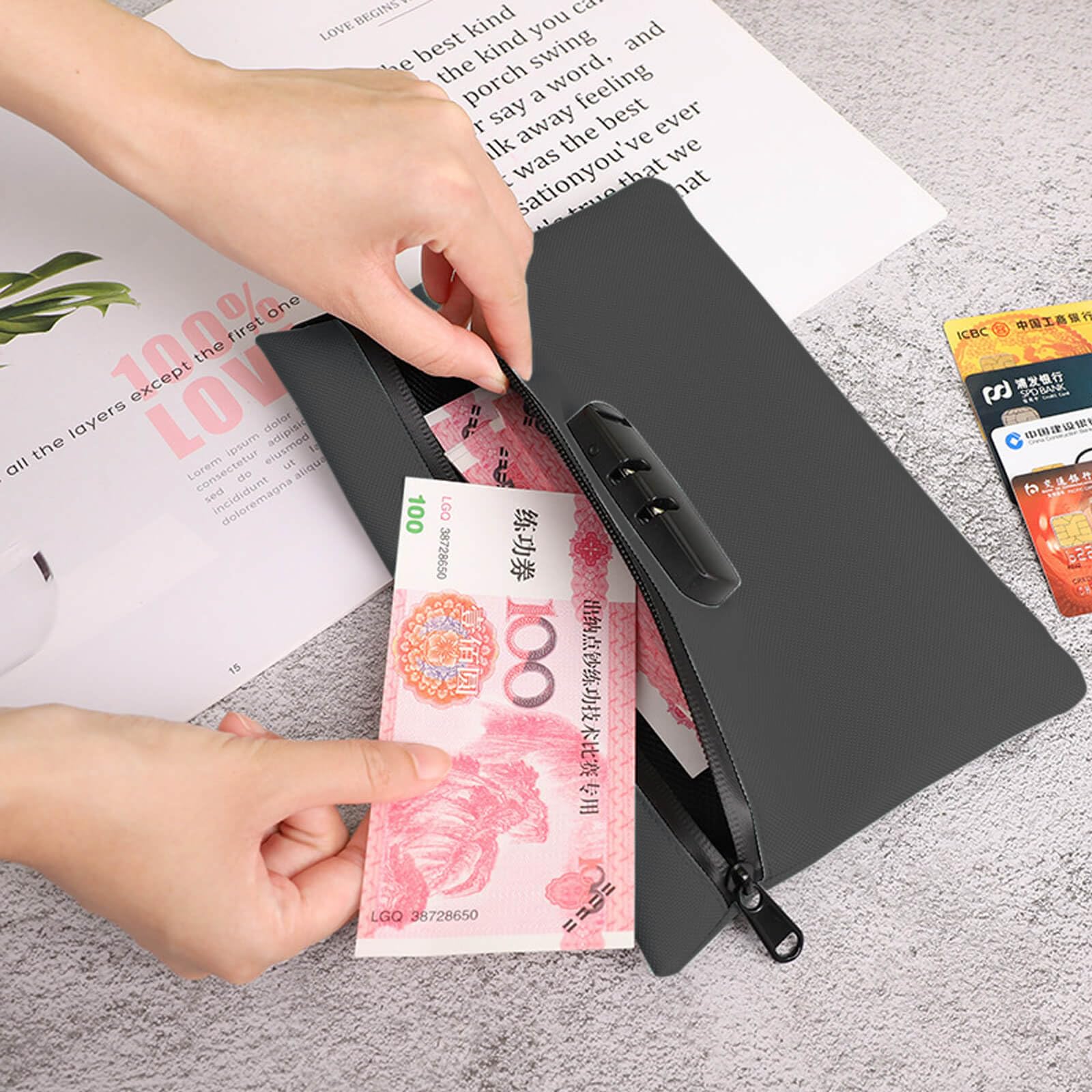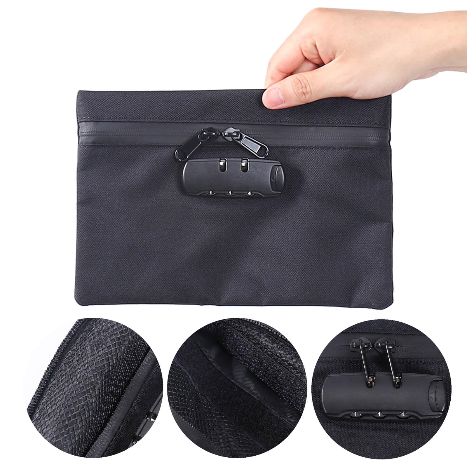 収納ボックス 小型 鍵付き ポーチ 貴重品ボックス 通帳入れ 盗難防止 小物 鍵収納 大容量 ポータブル 旅行 出張 カギ管理 集金ポーチ 書類ケース トラベルポーチ 集金袋 現金 クレジットカード パスポート用の収納ポーチ (ブラック)