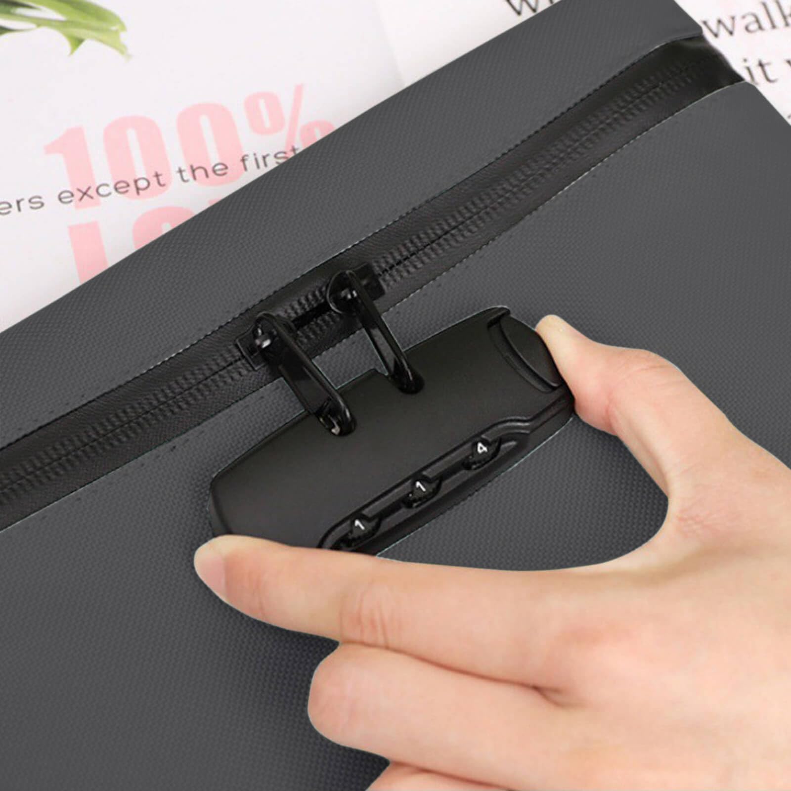 SEKAM 耐火バッグ 書類収納バッグ(37x28x10cm)書類保管ケース 集金袋 防水防火 手提げ 財産収納ケース 金庫耐火 現金収納 タブレット収納 パスポート ファイル 安全 整理 分類 保管(ブラック)