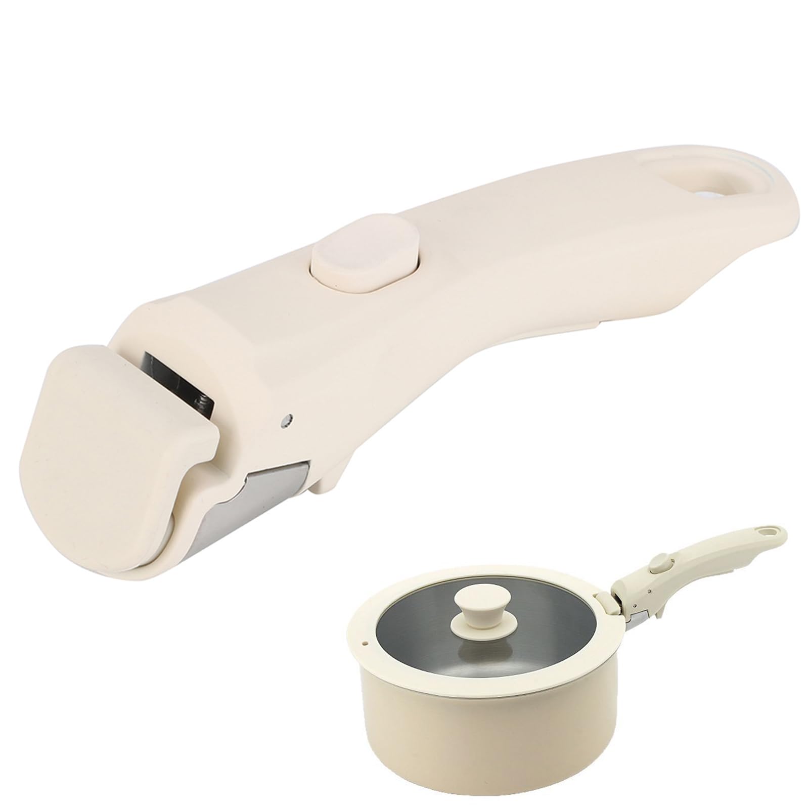 鍋 取っ手 スキレット ハンドル 取り外し可能 ワンタッチ着脱 耐熱鍋フライパン用取っ手 着脱式ハンドル 汎用交換用 安定性 取り付け簡単 鍋を傷つけない (ベージュ)