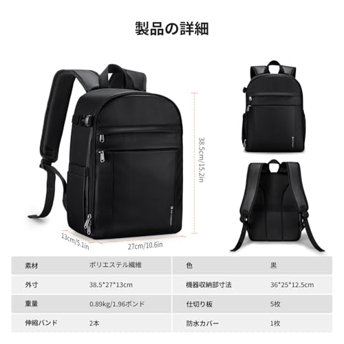 [Cwatcun] カメラバッグ リュック 大容量 カメラバッグ 一眼レフ 防水加工 収納双肩 カメラリュック カメラ三脚収納 軽量 一眼レフカメラバッグ DSLR デジタルカメラ ドロン用 カメラバッグ カメラケース TRL(2.0ブラック, L)