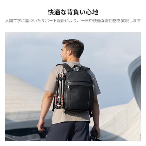 [K&F Concept] カメラバッグ カメラリュック リュックサック 25L 大容量 2気室 おしゃれ レインカバー付き EVA材質防水耐衝撃 16インチPC収納&三脚収納可 旅行/撮影/登り/アウトドア撮影に適用 黒