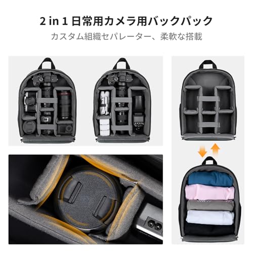 K&F Concept カメラバック カメラリュック リュックサック バックパック 大容量 2気室 おしゃれ nikon canon Sigma Tamron sonyなどカメラ兼用 16インチPC/三脚付け可 軽量 一眼レフ 旅行/撮影/登り/アウトドア撮影に適用 一眼レフカメラバッグ