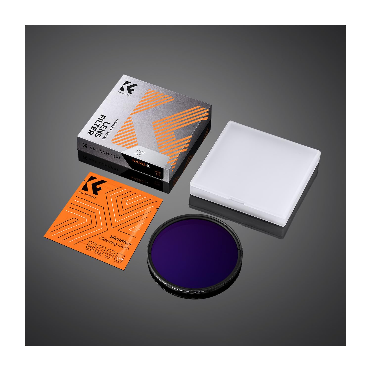 K&F CONCEPT 77mm PLフィルター 偏光フィルター コントラスト 反射調整用 薄枠 CPLフィルター 1枚クリーニングクロス付属(Nano-Klear)
