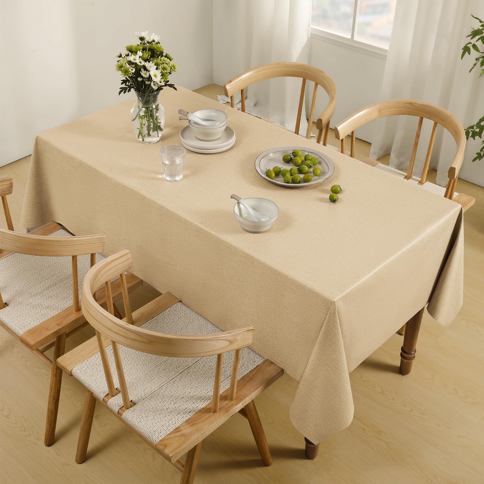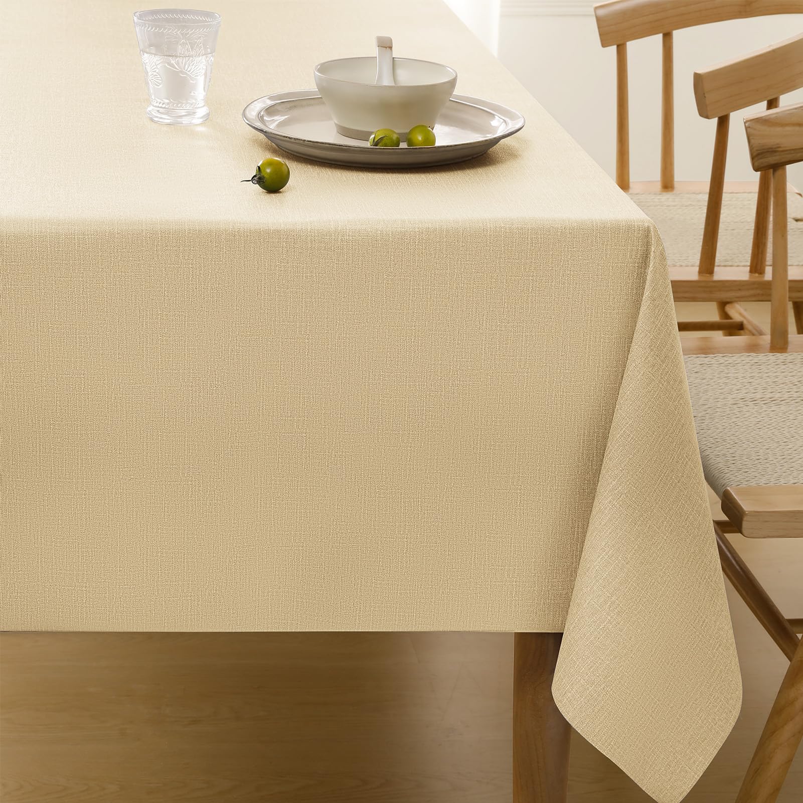 AooHome テーブルクロス ベージュ 長方形 撥水 小さめ 無地 汚れ防止 おしゃれ シンプル テーブルカバー リネン類 耐熱 丸洗い お手入れ簡単 家庭用 4人がけ 120x150cm