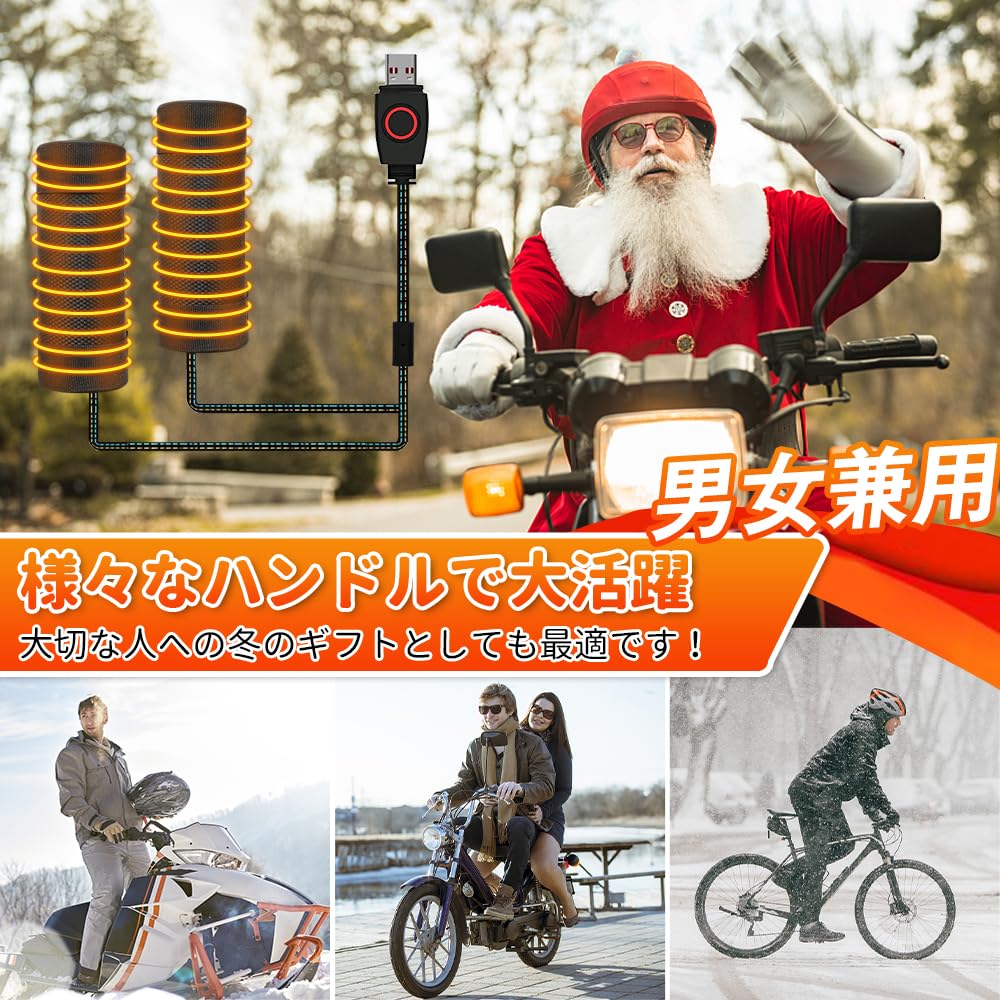 バイク用グリップヒーター ハンドルヒーター 巻き付け式 5V2A USB給電 3段階温度 取り付け簡単 ホットグリップ 汎用 オートバイ/自転車/原付/スクーター 防寒対策 冬 防寒グッズ