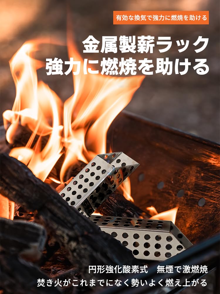 焚き火台 直径46cm、高さ21.5cm 収納バッグ付き 薪と木炭対応