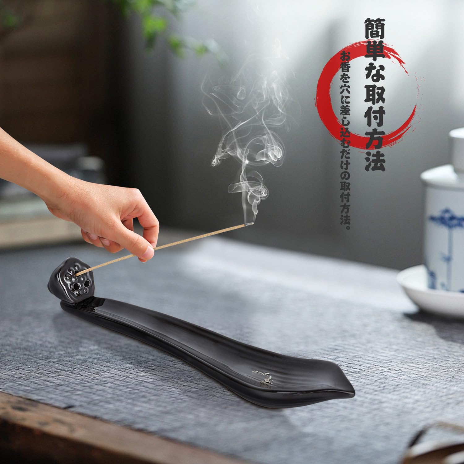 CEREMONY お香立て 横置き 安全 おしゃれ 陶器製 ステンレスネット付 香炉 携帯用 線香立て 書斎 瞑想 寝かせる 供養 仏壇 茶道 用品 インテリア