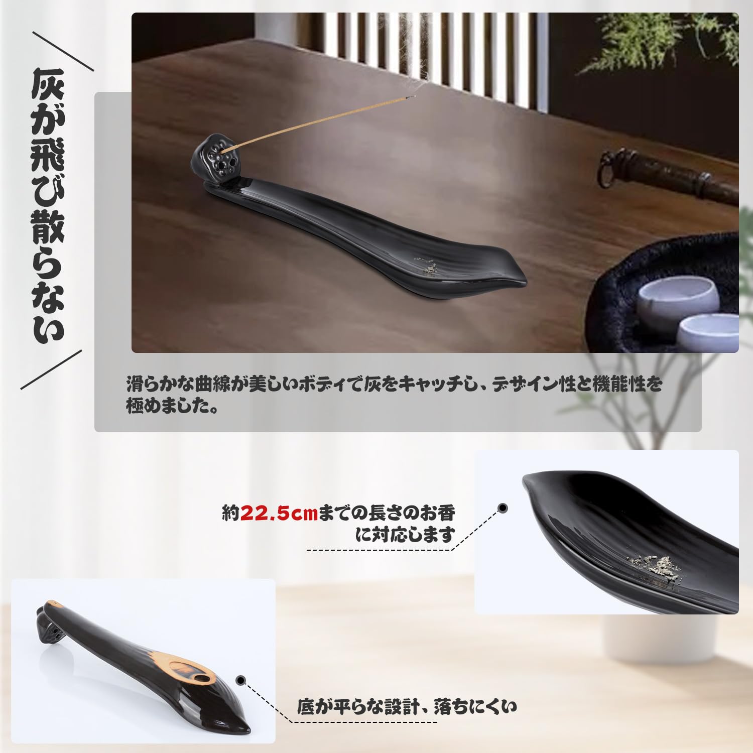 CEREMONY お香立て 灰がこぼれない 御洒落 ガラス高さUP 長香にも対応 香炉 線香立て 仏壇 書斎 瞑想 玄関先