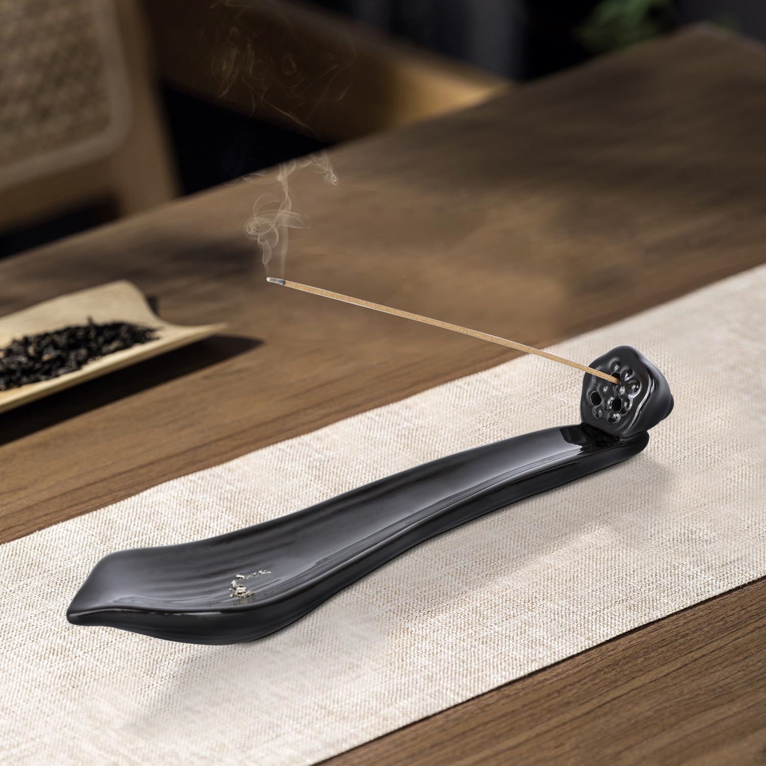 お香立て 線香立て 横置き 灰がこぼれない 寝かせる線香皿 陶器製 仏壇用 癒やし香炉 ジム ヨガ 多機能 喫茶店 茶室 書斎 瞑想 睡眠(茶色 1個)