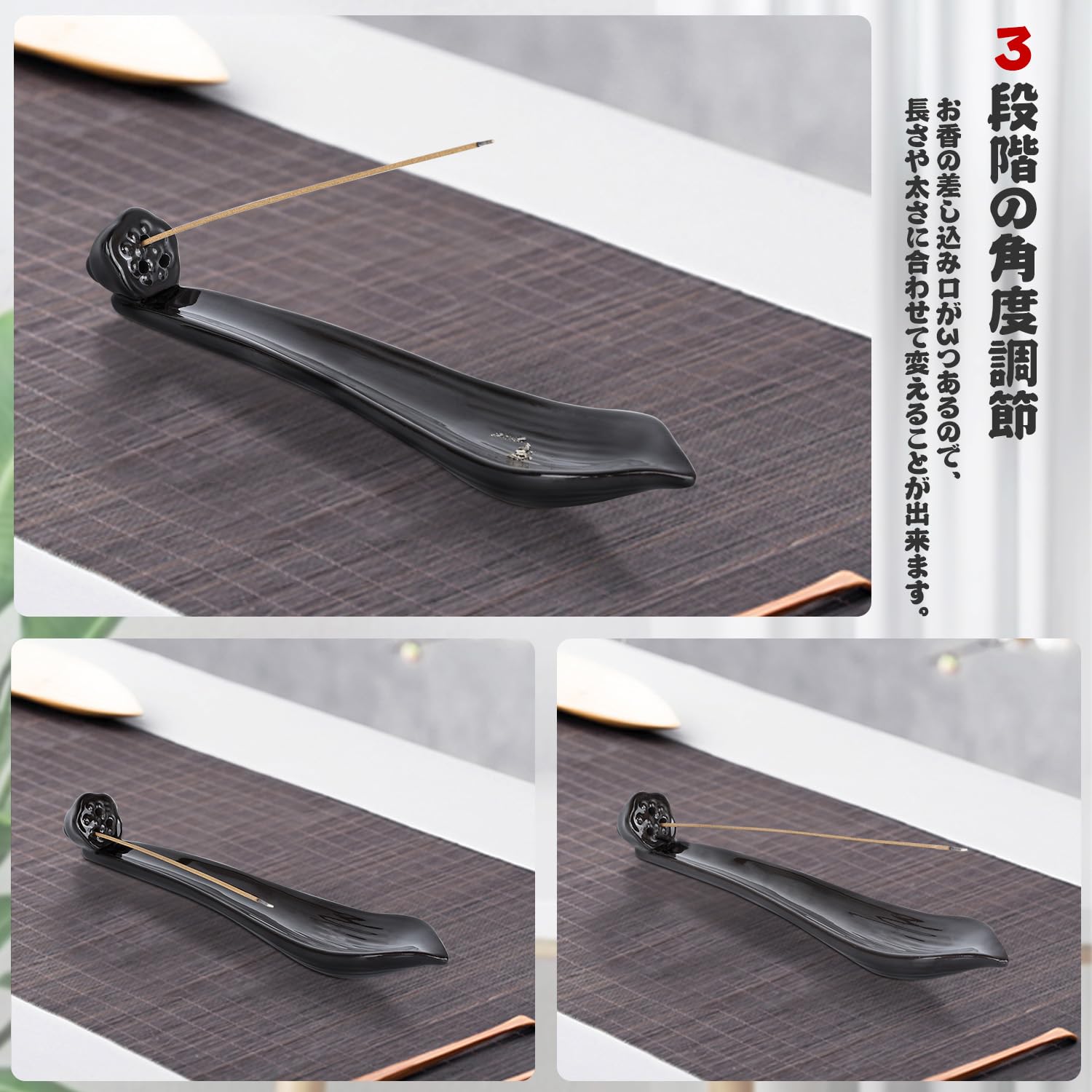 お香立て 横置き香炉 香炉 横置き 仏壇/茶道用品/香道用/料亭用 蓋つき 線香皿 難燃綿付き 瞑想 睡眠 ヨガ スパ ルーム装飾用 おしゃれ 和風 安全 香道用 (ブラック)