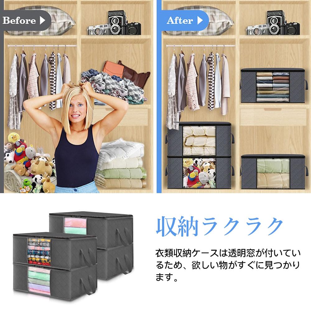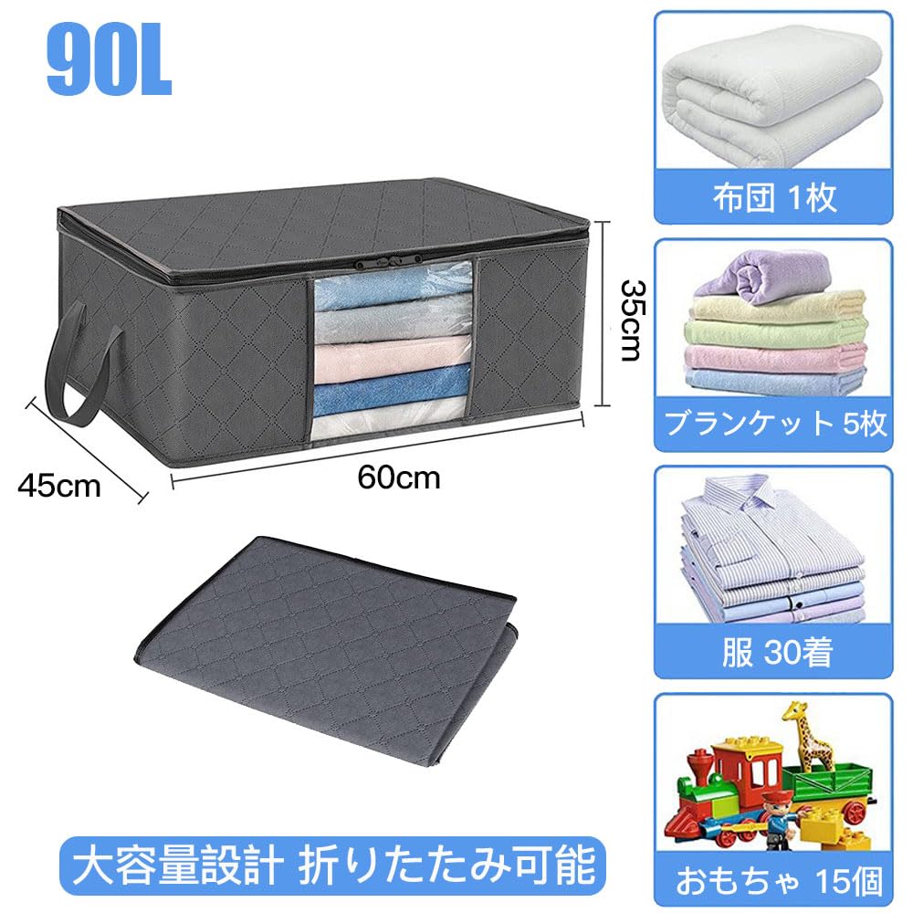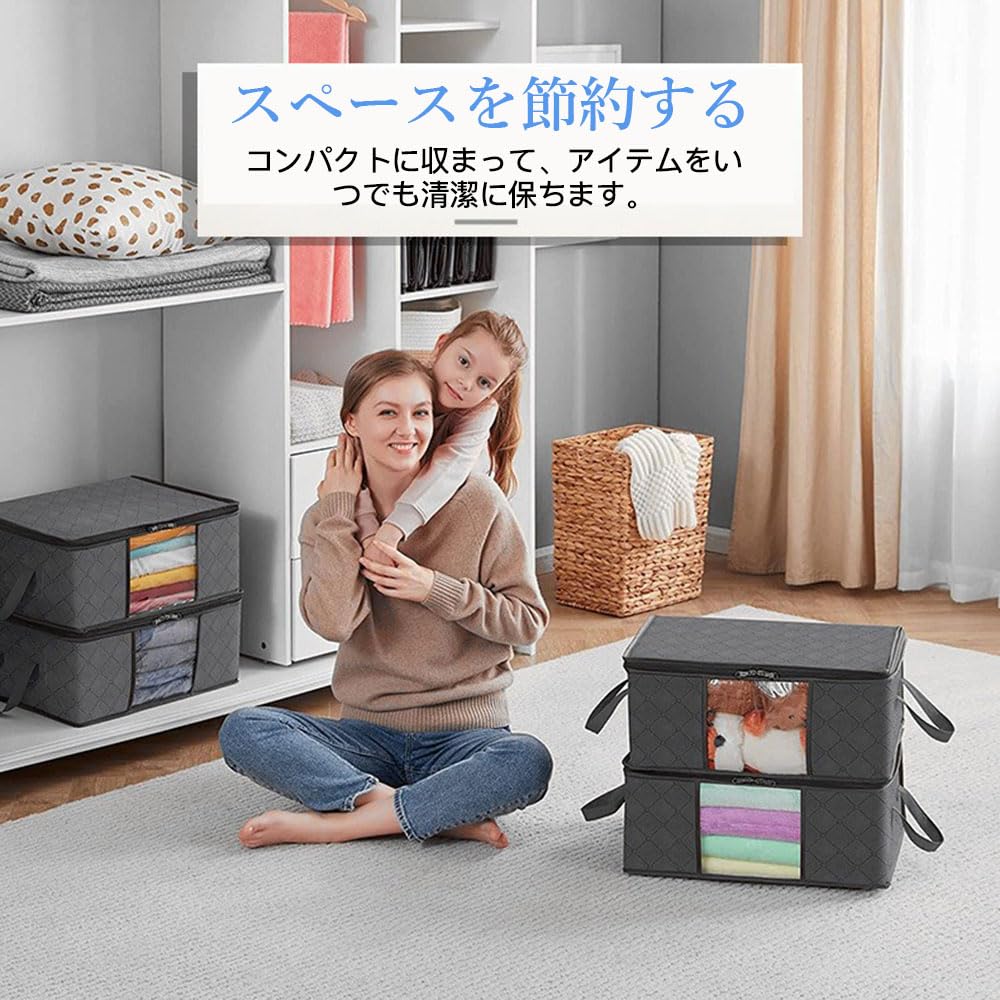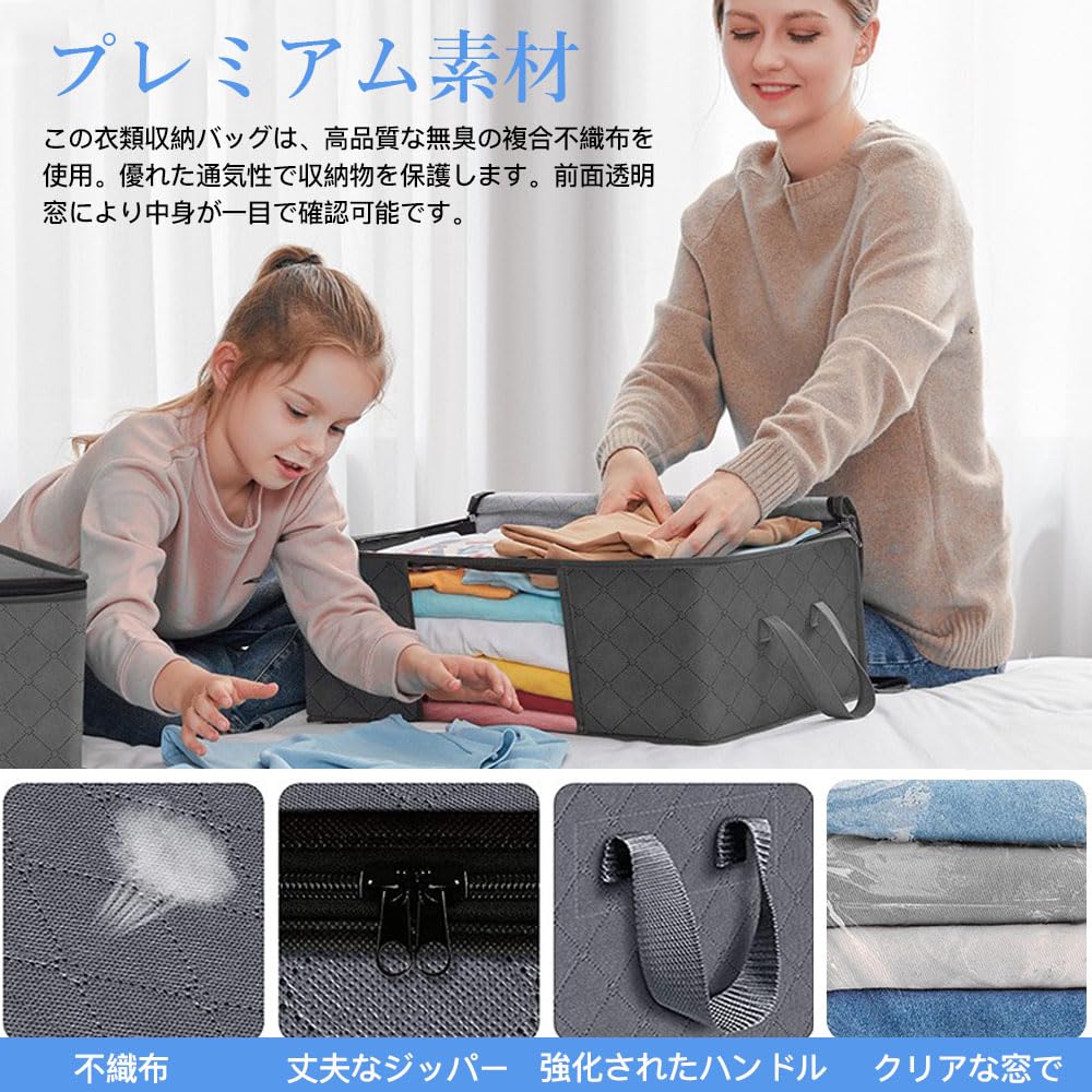 サムコス 布団収納袋 衣装ケース 収納ボックス6組 大容量 衣類収納ケース 毛布 布団 洋服収納 通気性の良い不織布 折りたたみ式 収納ボックス 布団収納カバン 旅行 省スペース 寝具ケース透明窓付き 持ち手収納袋 (グレー, 90L)