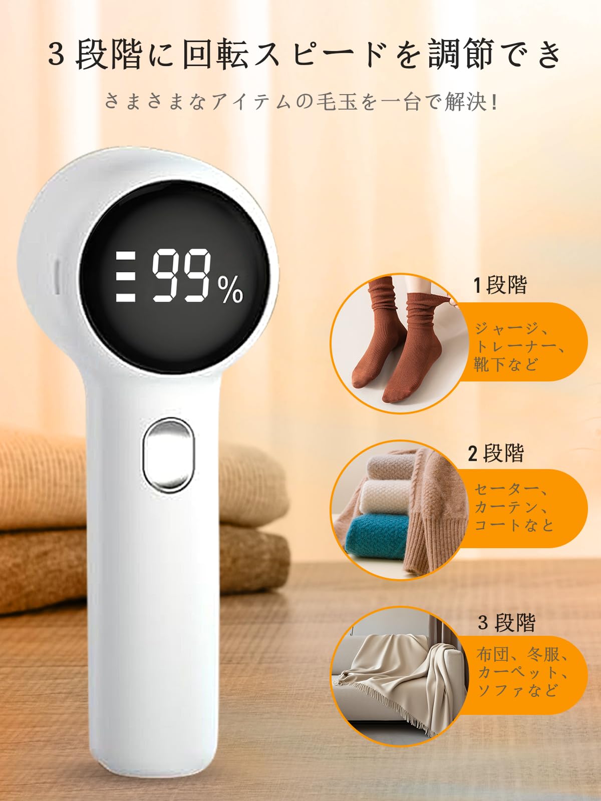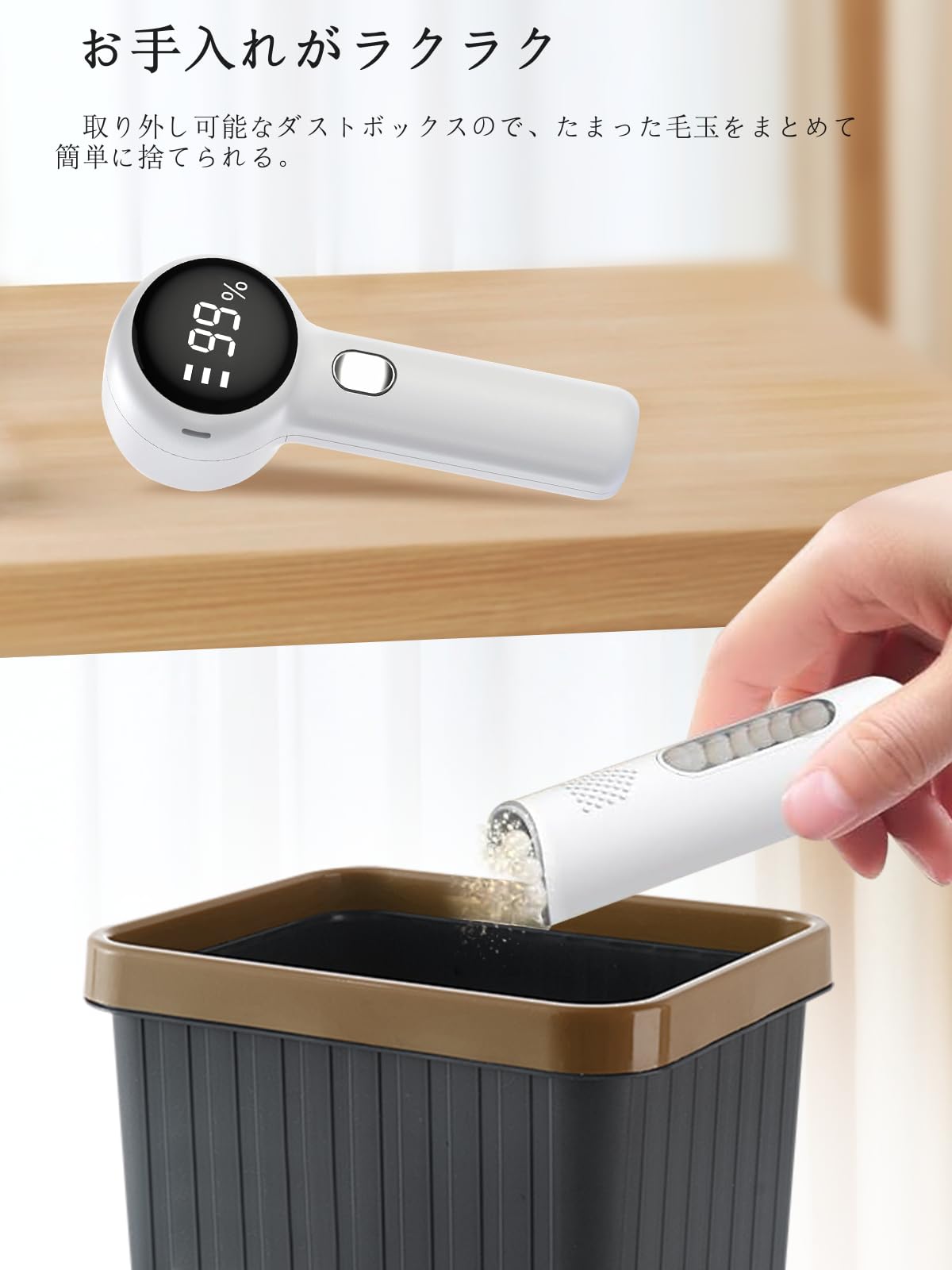 毛玉取り けだまとり 電動 LCD液晶ディスプレ 65mmの超大型強力6枚刃 スピード3段階調整 様々な衣類に対応 切れ味アップ 生地を傷めない 毛玉取り器 替刃付き 安全ロック USB充電式 コードレス使用可 持ちやすい 毛玉とり