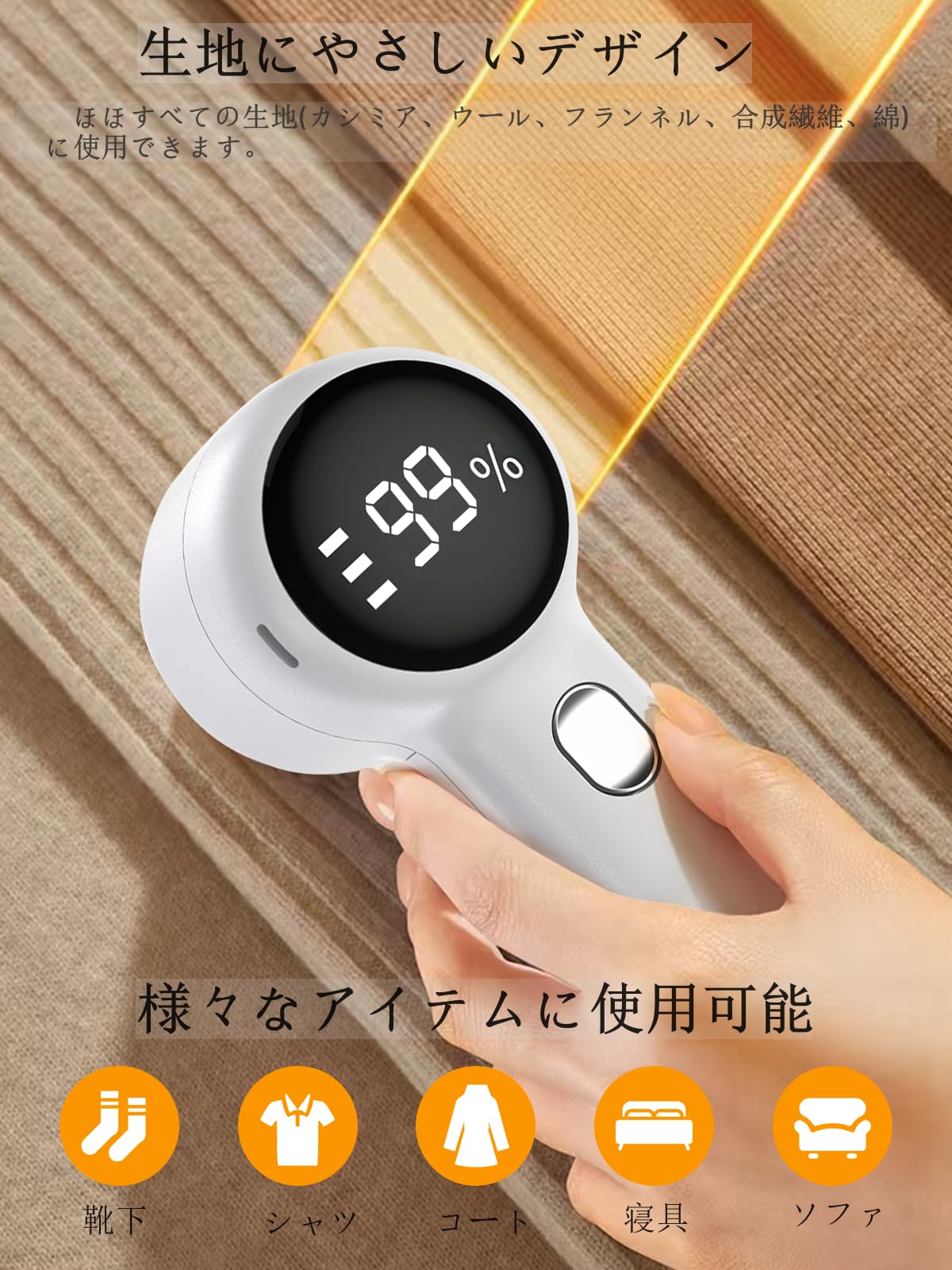 毛玉取り けだまとり 電動 毛玉取り器 LCD液晶ディスプレイ 強力 6枚刃 スピード 3段階調整 生地を傷めない毛玉取り機 切れ味 替刃付き USB充電式 コードレス使用可 毛玉カット 毛玉とり(ゴールド)