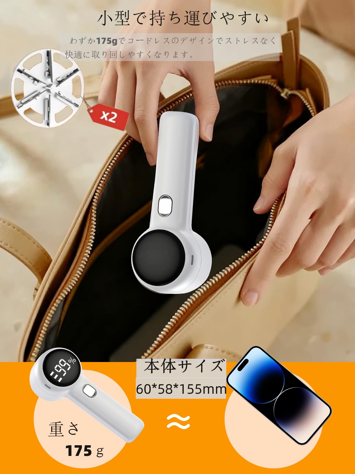 Lixiin 毛玉取り 電動 けだまとり 人気 強力カッター 風合いガード 安全装置 生地を傷めない 持ちやすい 大容量 毛玉ケース コードレス式+Type-C充電式兼用 様々な⾐類 寝具 旅行 自宅用 【替刃1個追加 掃除ブラシ type-Cケーブル 日本語・英語説明書付き】ホワイト