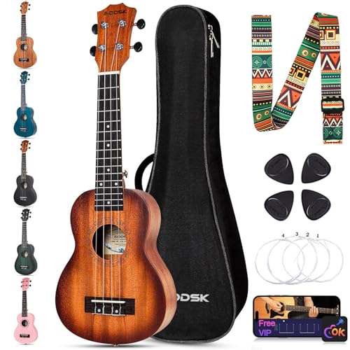 AODSK ソプラノウクレレ 初心者用 21インチ ウクレレ ギグバッグストラップ付き ナイロンストリング 4ピック ホリデーギフト