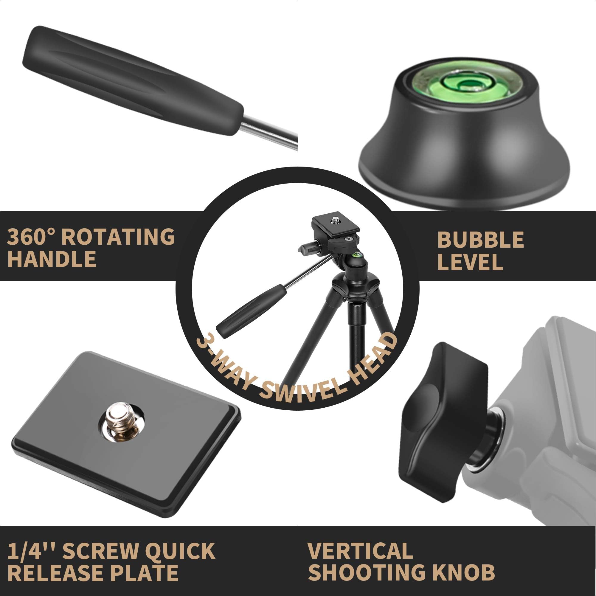 Koolehaoda 51 cmポータブルミニ三脚、360°ボールヘッド付き軽量コンパクト卓上三脚、最大荷重5 kg、一眼レフカメラに適しています(K521-ミニ三脚)