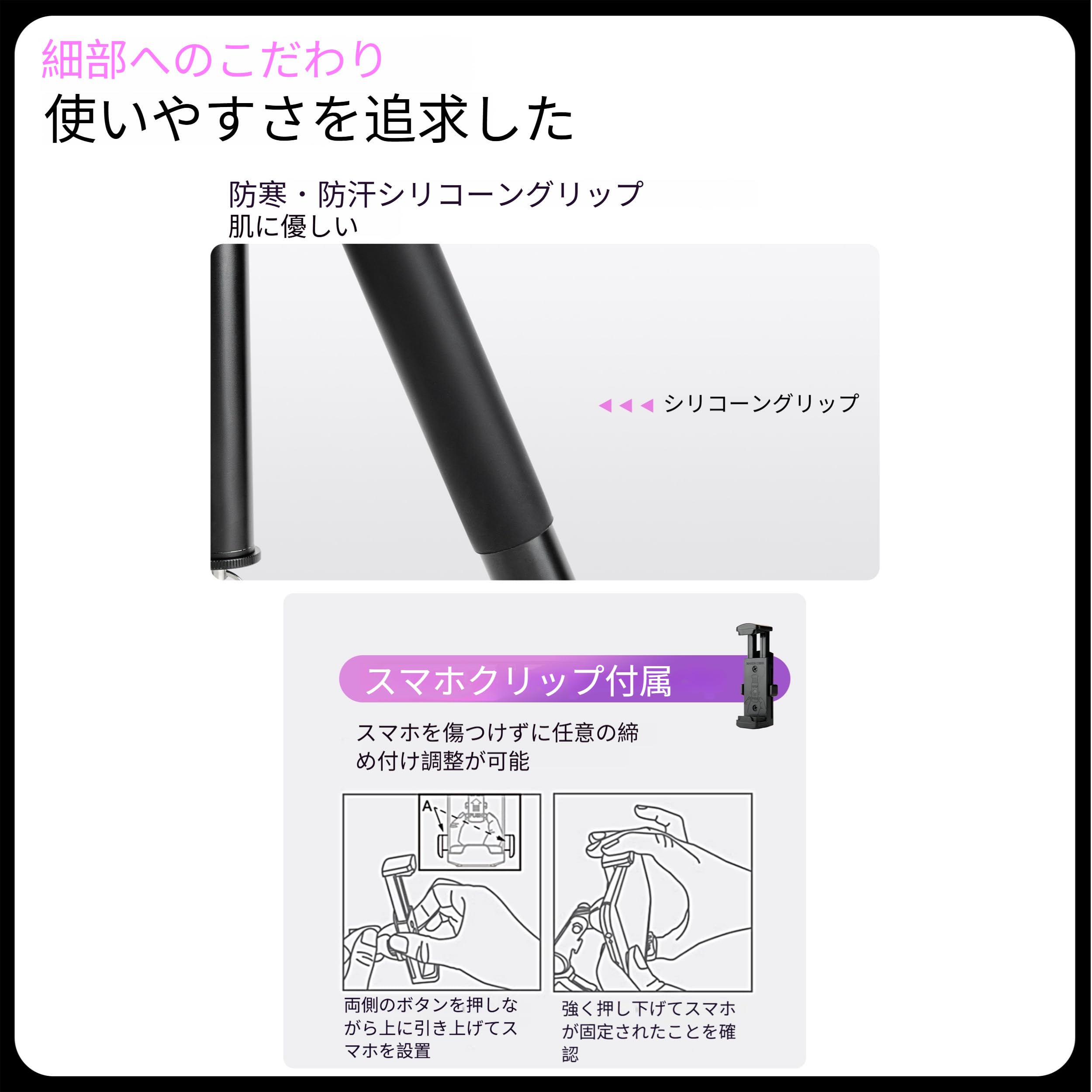 Fotopro 伸縮式ミニ三脚架 360°回転テーブルトップ三脚架 携帯電話ホルダーアダプター付き ハンドル付きセルフィースティック Vlogキット TL-601+SJ-85 ホワイト