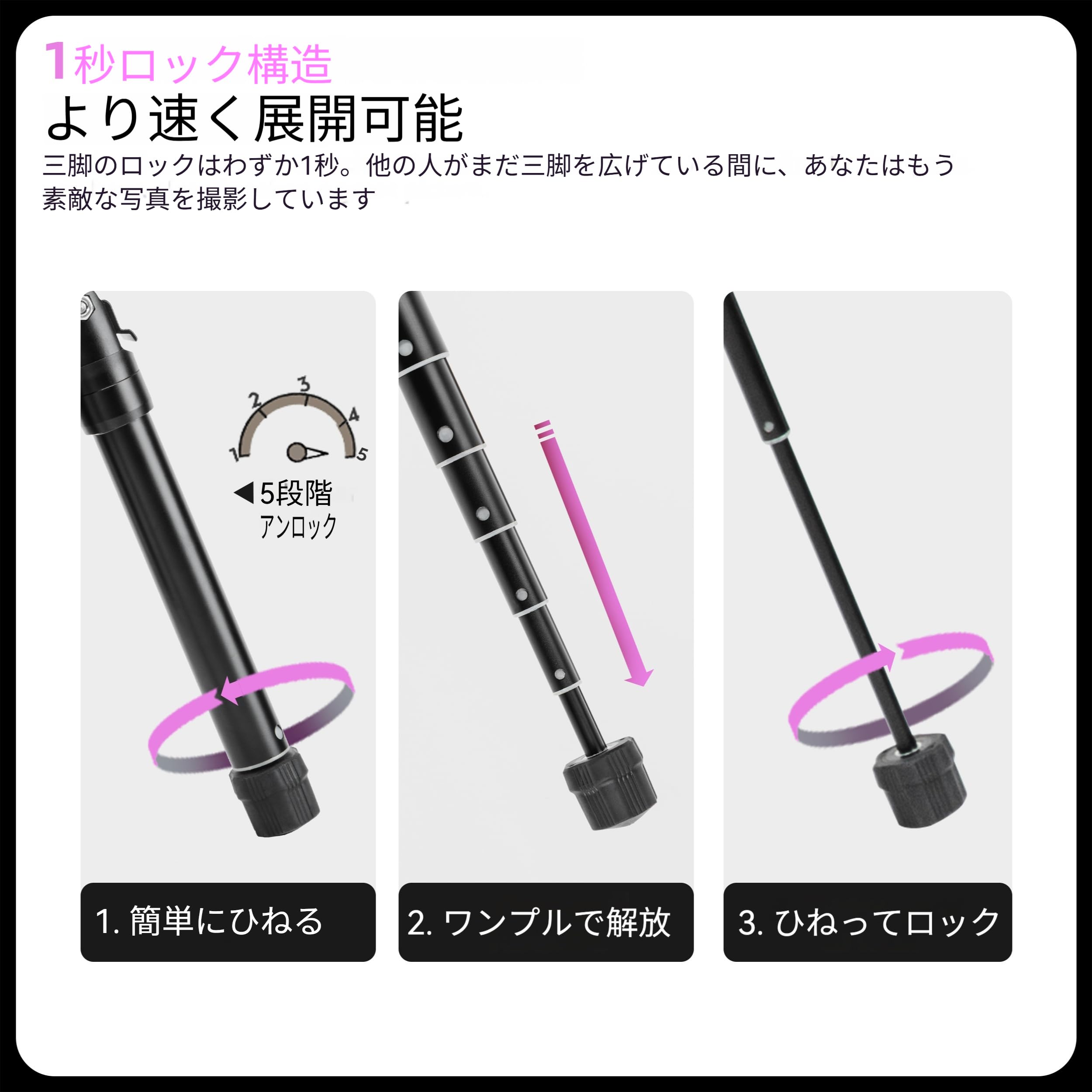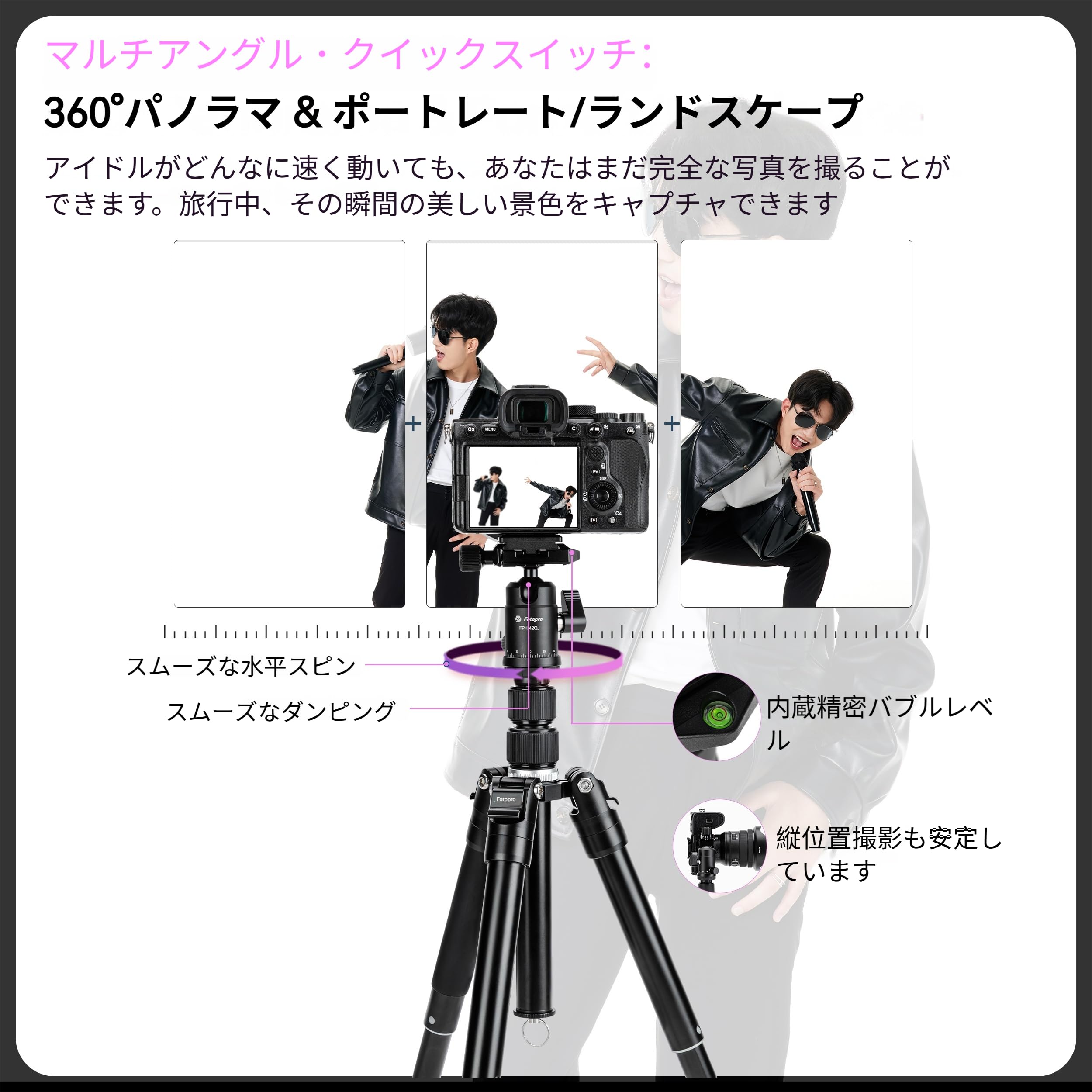 UBeesize 170cm 三脚 カメラ三脚 スマホ三脚 ビデオカメラ/一眼レフカメラ/スマホ/タブレット/iPad対応 3way雲台 360°回転可能 軽量 収納袋付き (黒) 適格請求書発行可 右手パンハンドル