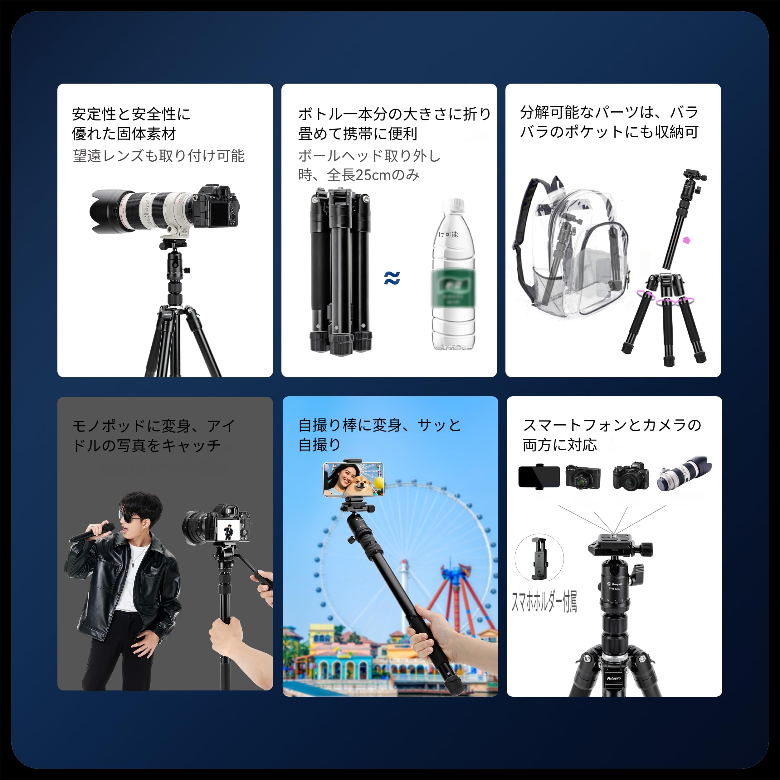 MINICOR カメラ付き携帯電話に適したアルミ製三脚 オックスフォードバッグとスタンドを備え iPhoneデジタル一眼レフカメラと互換性があり 5段伸縮 最大積載能力は6.6ポンド