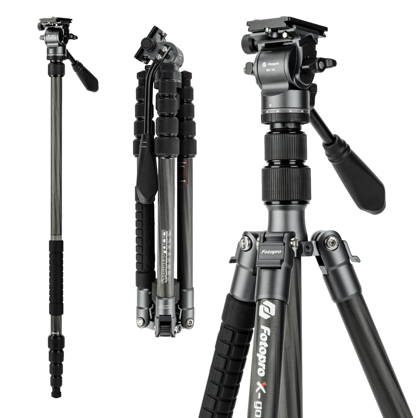 Fotopro 152CM カーボンファイバー製 旅行用三脚架 コンパクト カメラ三脚架 ボールヘッド付き クイックリリースプレート DSLR/ミラーレス対応 モノポッド変換可能 収納バッグ付属 最大荷重8KG X-go E2 黒