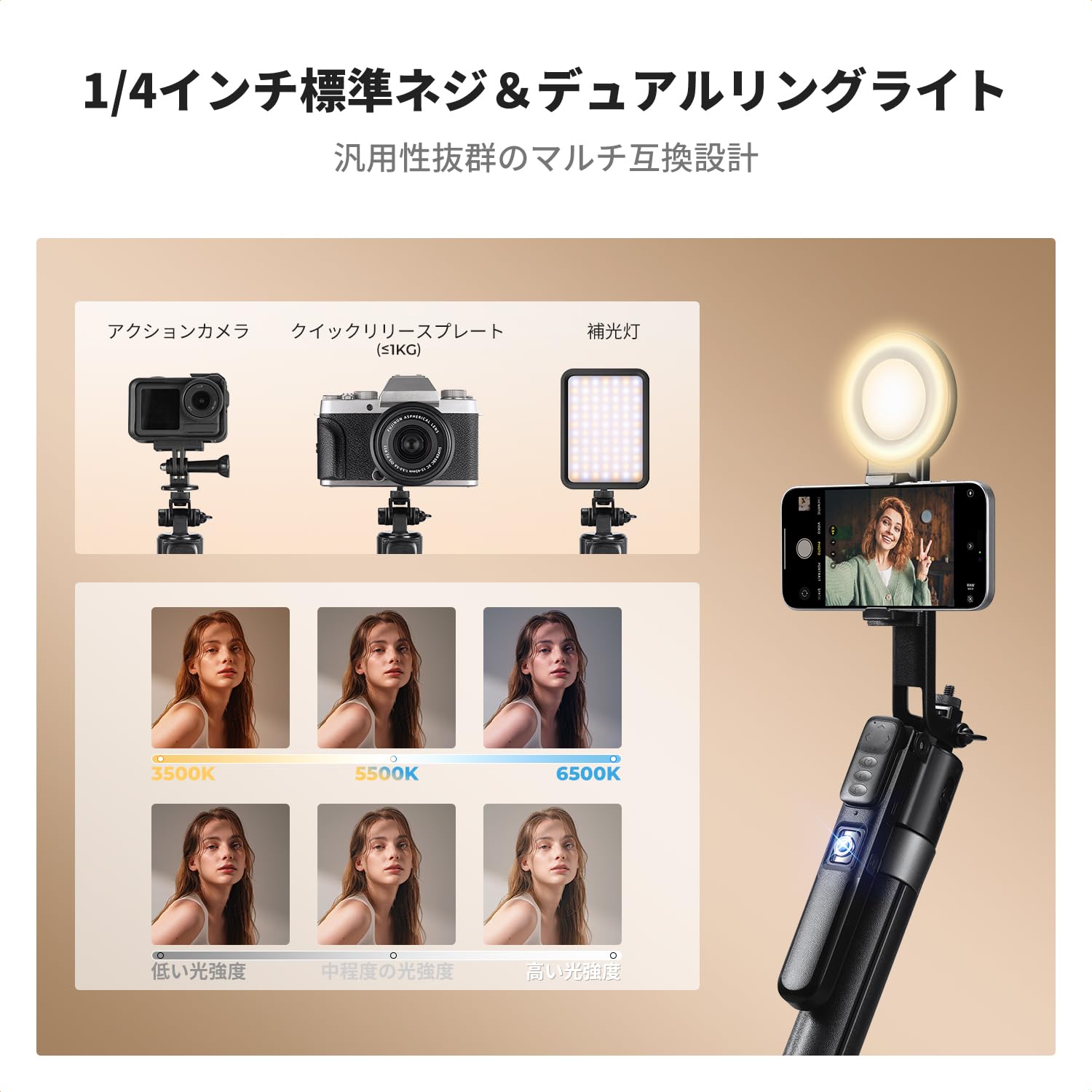 K&F Concept 自撮り棒 セルフィースティック for iPhone 自動開閉スマホ三脚スタンド 360°回転 Bluetoothリモコン付き 伸縮式自動三脚 アルミ合金製