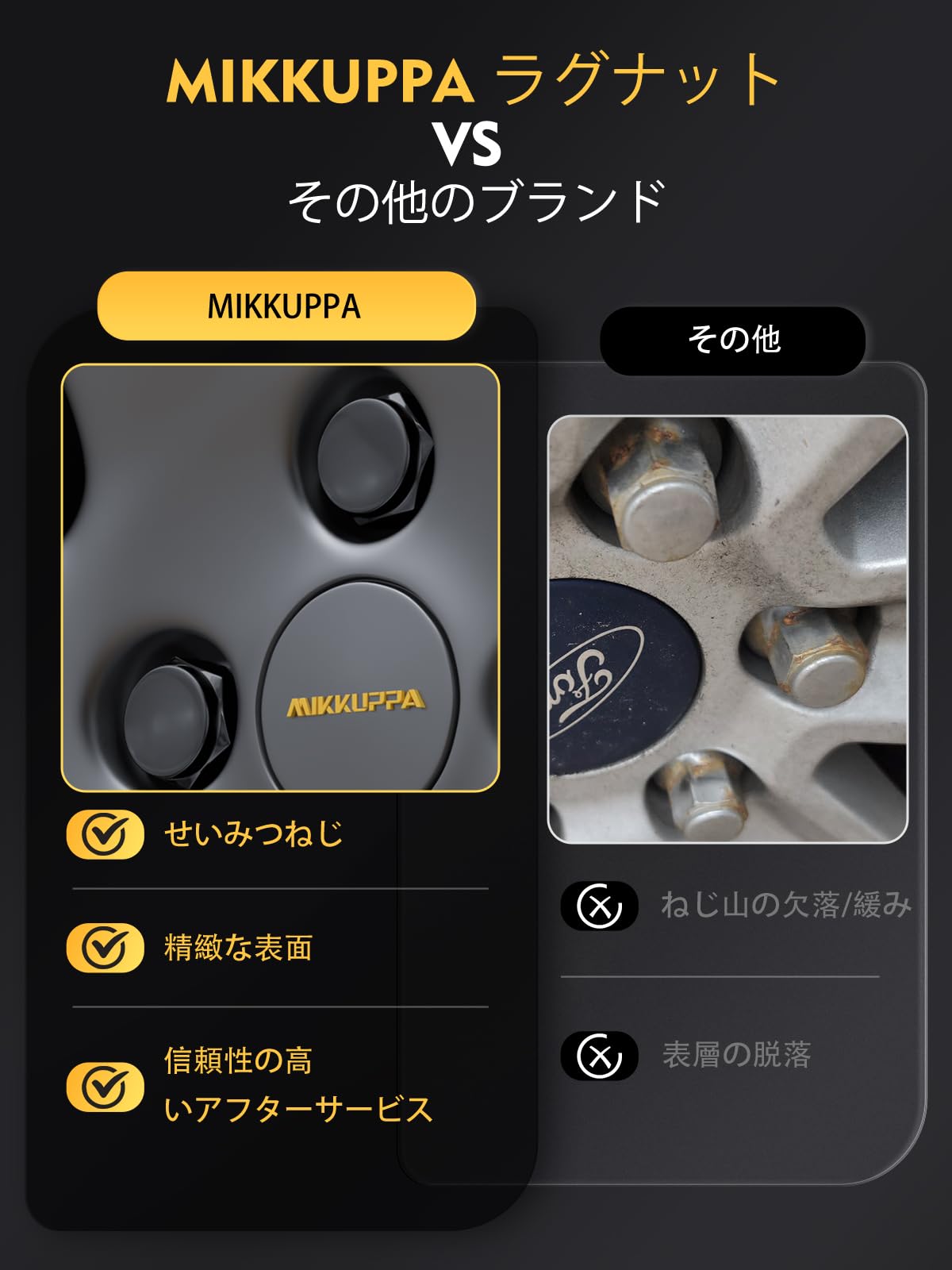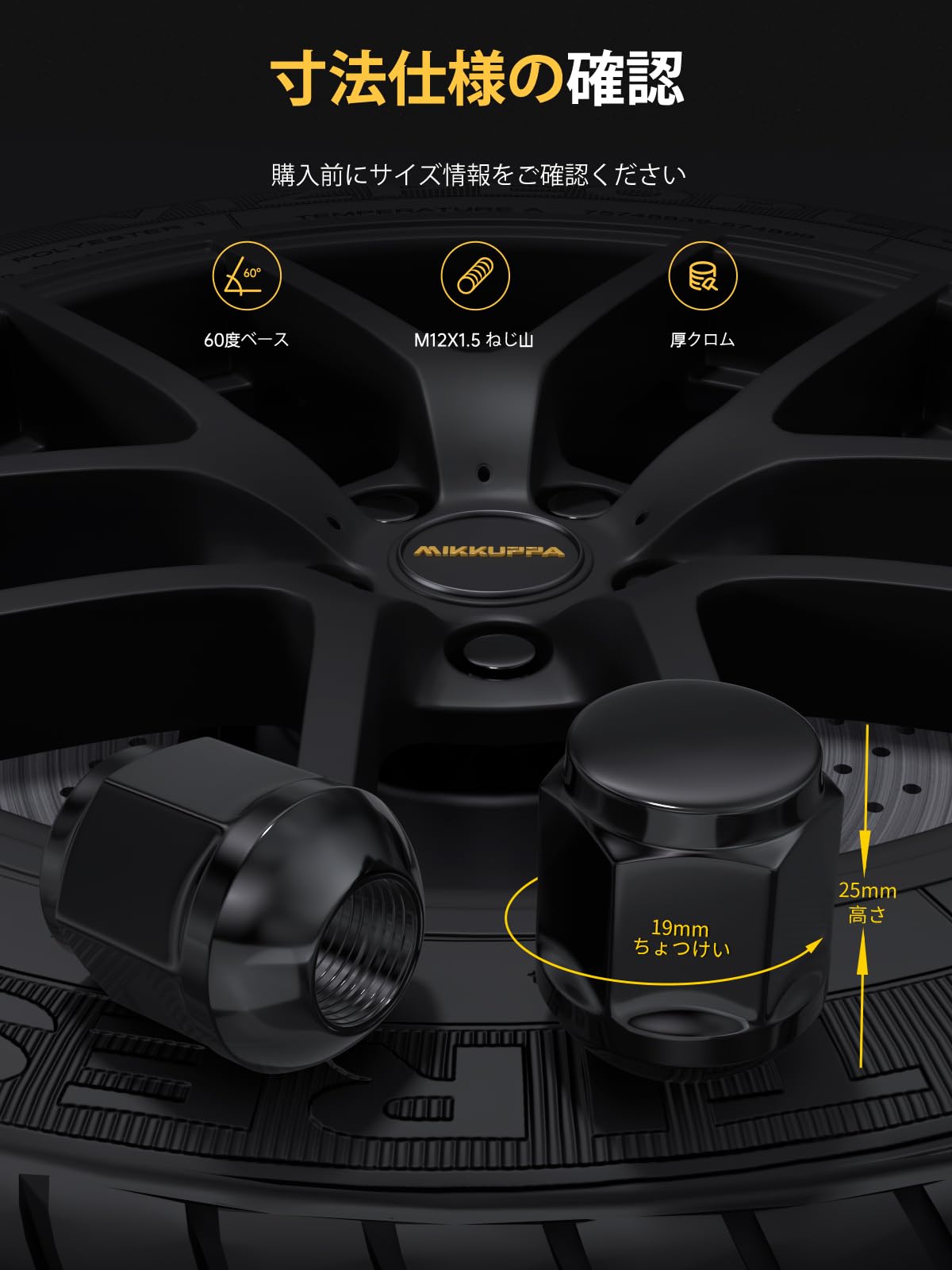 MIKKUPPA ホイールナット M12×P1.5 三菱・ダイハツ・トヨタ・マツダ用 テーパ一座 ナット ブラック 19HEX 長さ25 mm 20個セット ラグナット