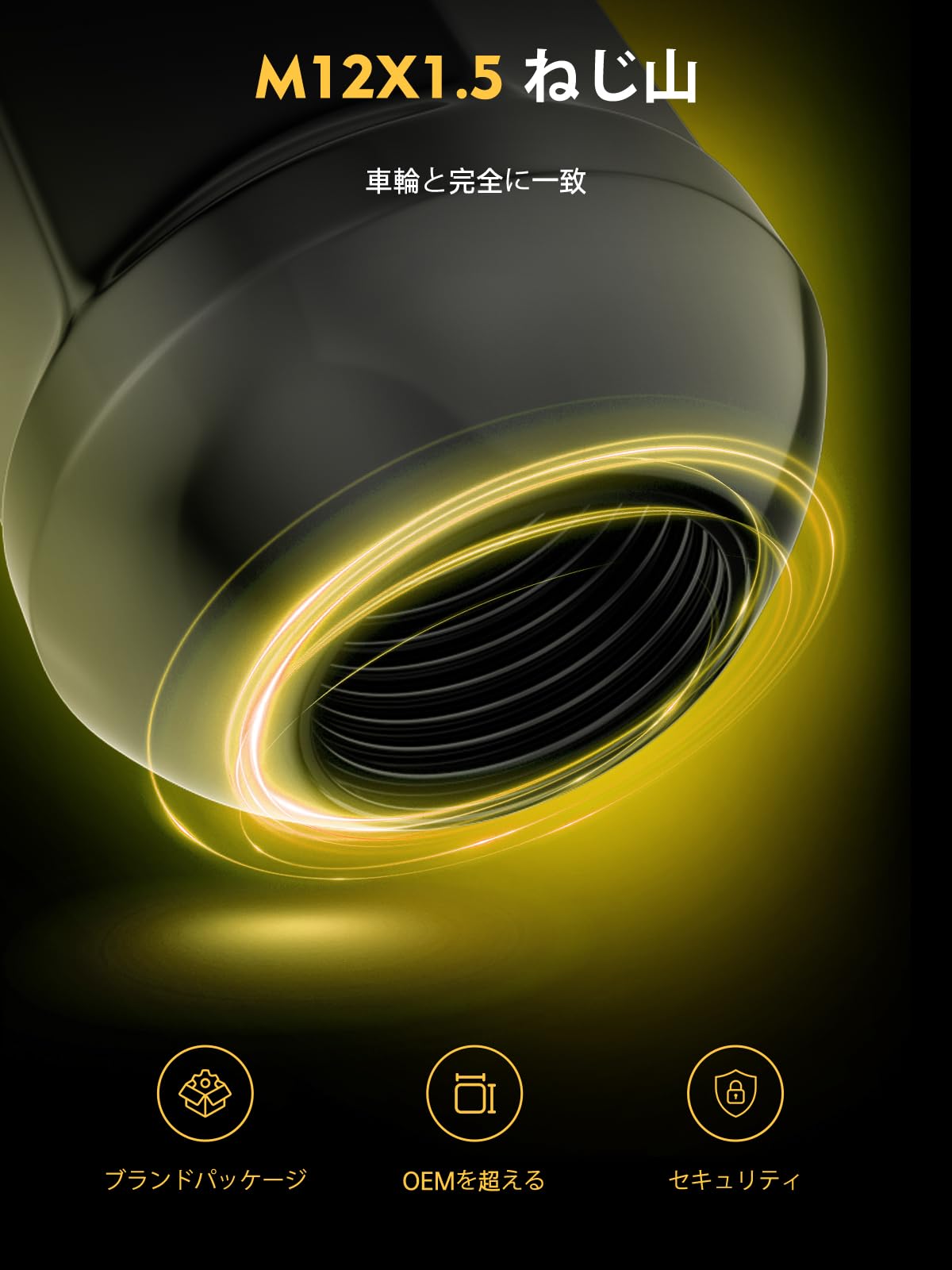 スチール製 ホイールロックナット 20個セット M12 x P1.5 トヨタ/ホンダ/マツダ/ダイハツ/三菱の普通車と軽自動車に対応 長さ33mm 外七角 テーパー60 4穴/5穴用 19HEX/21HEXソケット付 ショートナット ラグナット レーシングナット 軽量 盗難防止 イエロー