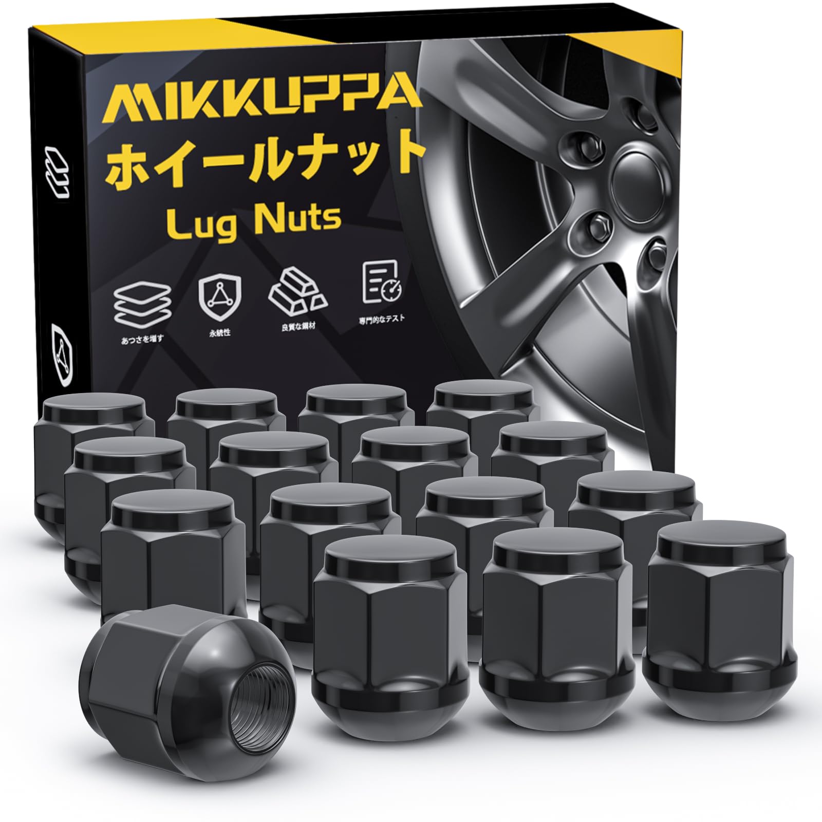 MIKKUPPA ホイールナット M12×P1.25 ニッサン スズキに適用 テーパ一座 ブラックナット 19HEX 長さ25 mm 16個セット ラグナット