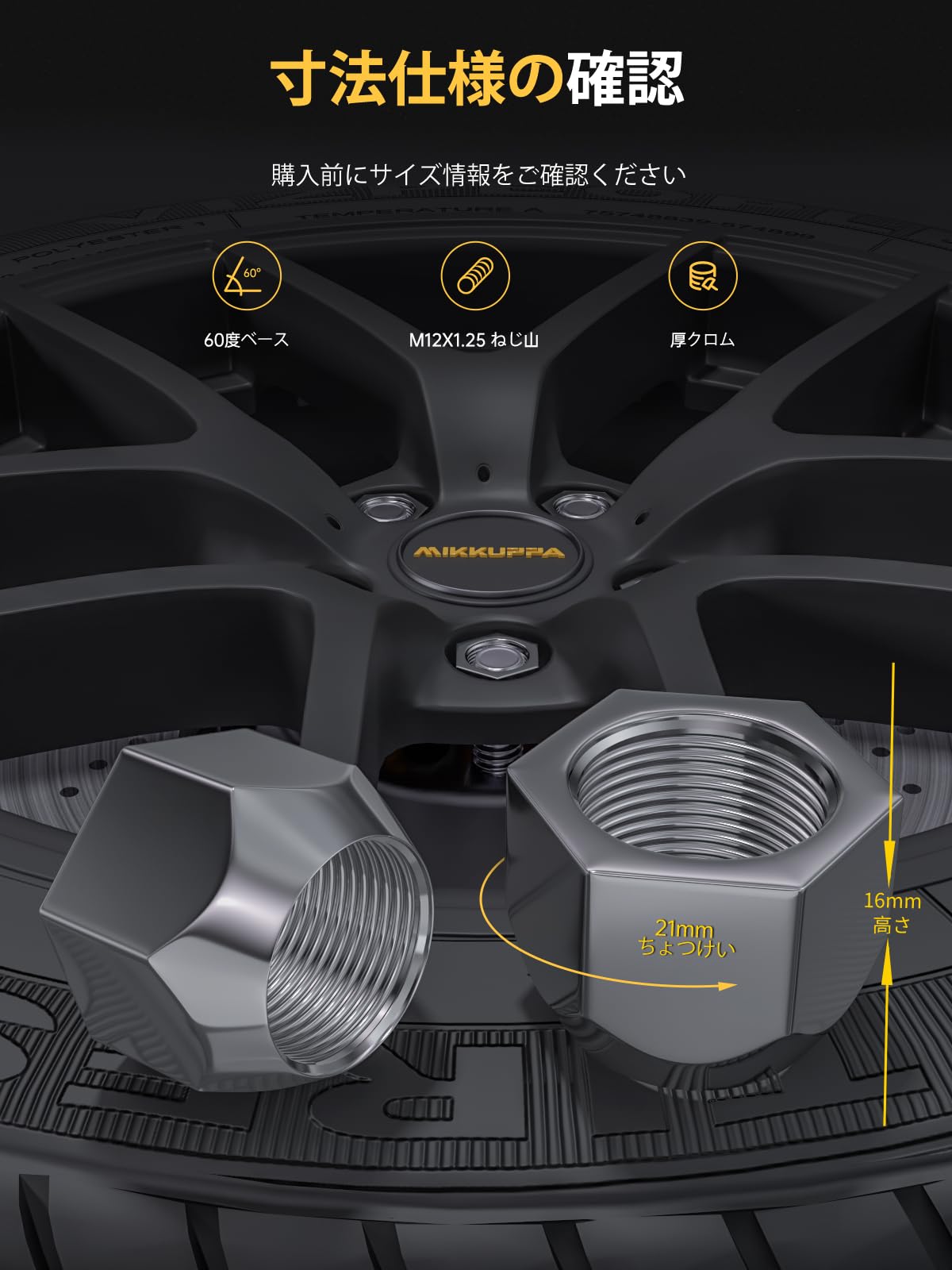 MIKKUPPA ホイールナット M12×P1.25 貫通タイプ ニッサン·スズキに適用 テーパー座60° ラグナット シルバー 21HEX 長さ21 mm 16個セット SCM合金鋼 タイヤナット
