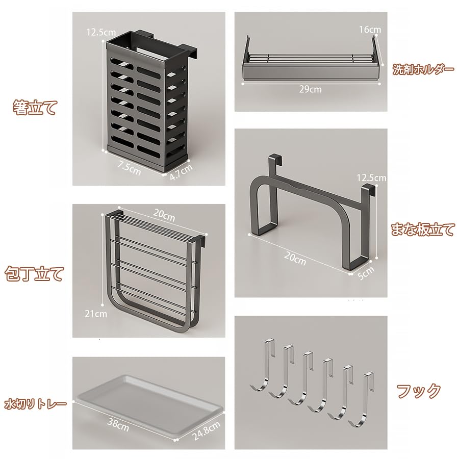 SIUSA 水切りラック 水切りかご 横置き 1段式 大容量 ディッシュラック キッチン収納 水が流れる 食器乾燥 皿立て 箸収納 包丁スタンド 組み立て簡単 ブラック